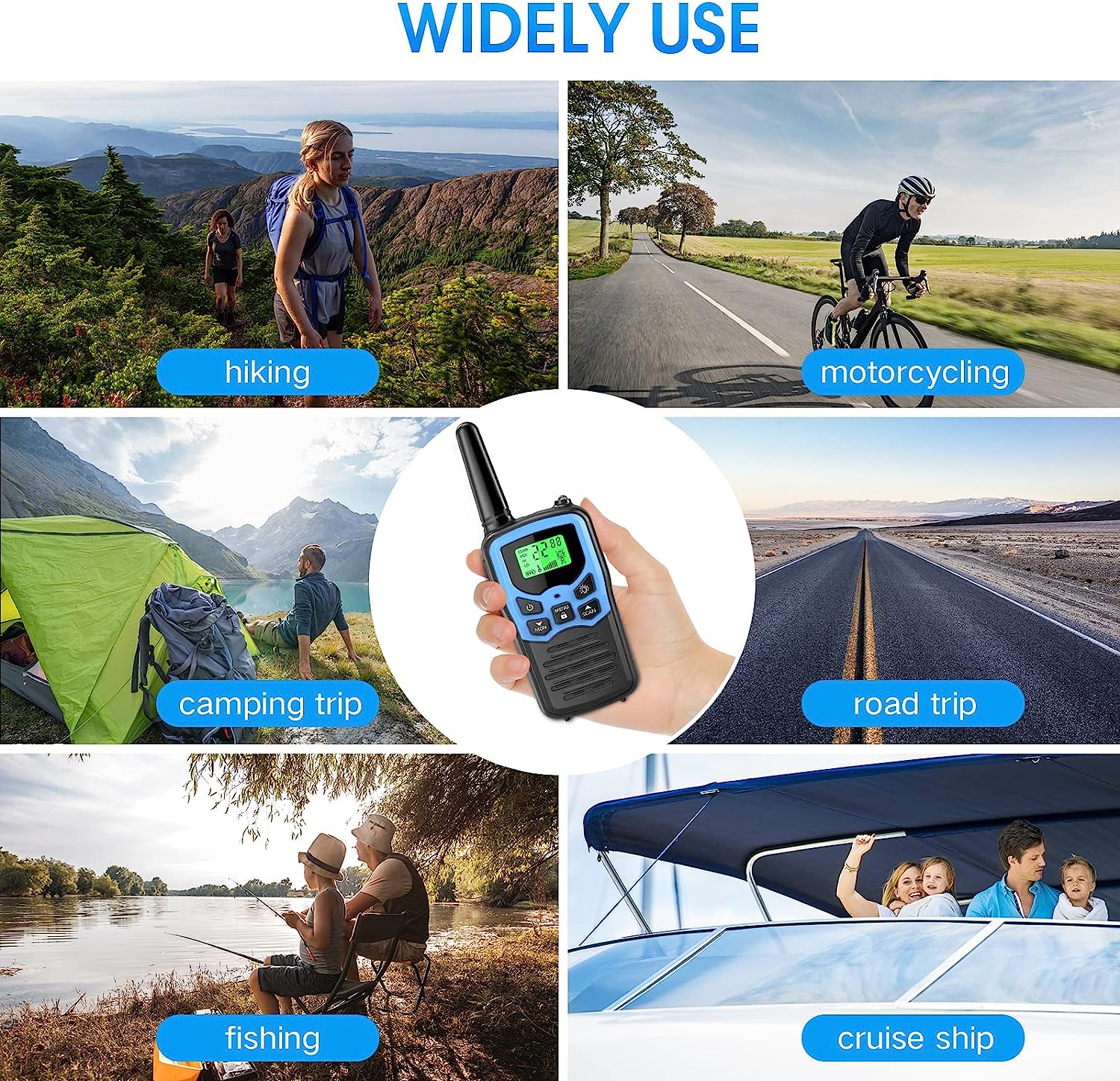 - 【 Long Distance Walkie Talkies】Walkie talkie can reach 3-5 miles communication range in open areas such as rural areas, suburbs or seaside, etc. where there is no shelter. If in cities or towns, walkie talkies can reach 0.6-1.2 miles. Adverse weather, car(Iron material), voyage and buildings will affect the range. The actual distance depends on the obstruction of the current environment.