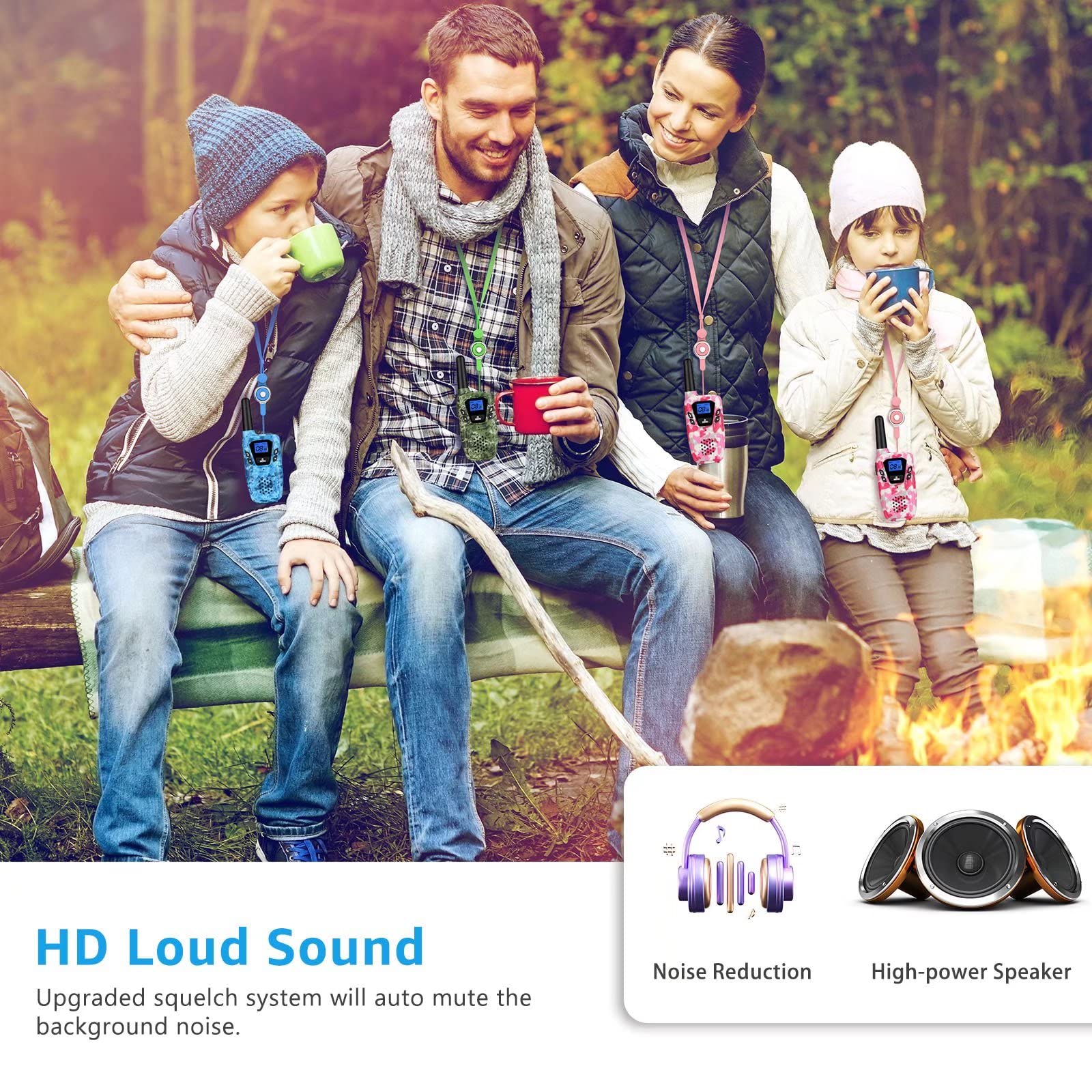 - u3010Clarity Like Never Beforeu3011uff1aExperience crystal-clear conversations with our upgraded squelch system and high-output speaker, which automatically suppresses background noises, delivering an HD sound quality. The HD voice walkie-talkies have a strong signal that can pass clearly through homes, so your kids can still talk with neighbor children when they are inside. No more worrying about your kids feeling lonely when it rains or at nighttime