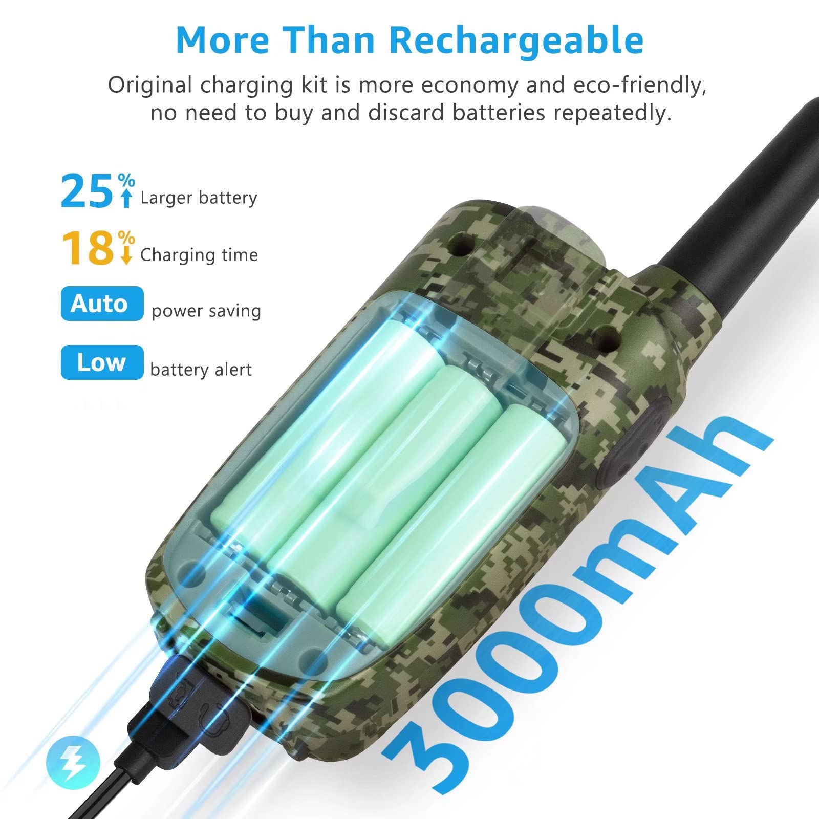 - u3010Cost-Effective & Earth-Friendlyu3011uff1aWhy keep buying batteries? With the USB rechargeable walkie talkies, say goodbye to repeatedly buying and trashing batteries. The original charging kit ensures you stay earth-friendly while saving money. The USB fast charging cable is also more convenient for charging anytime, anywhere, such as charging from a PC, car charger or power bank