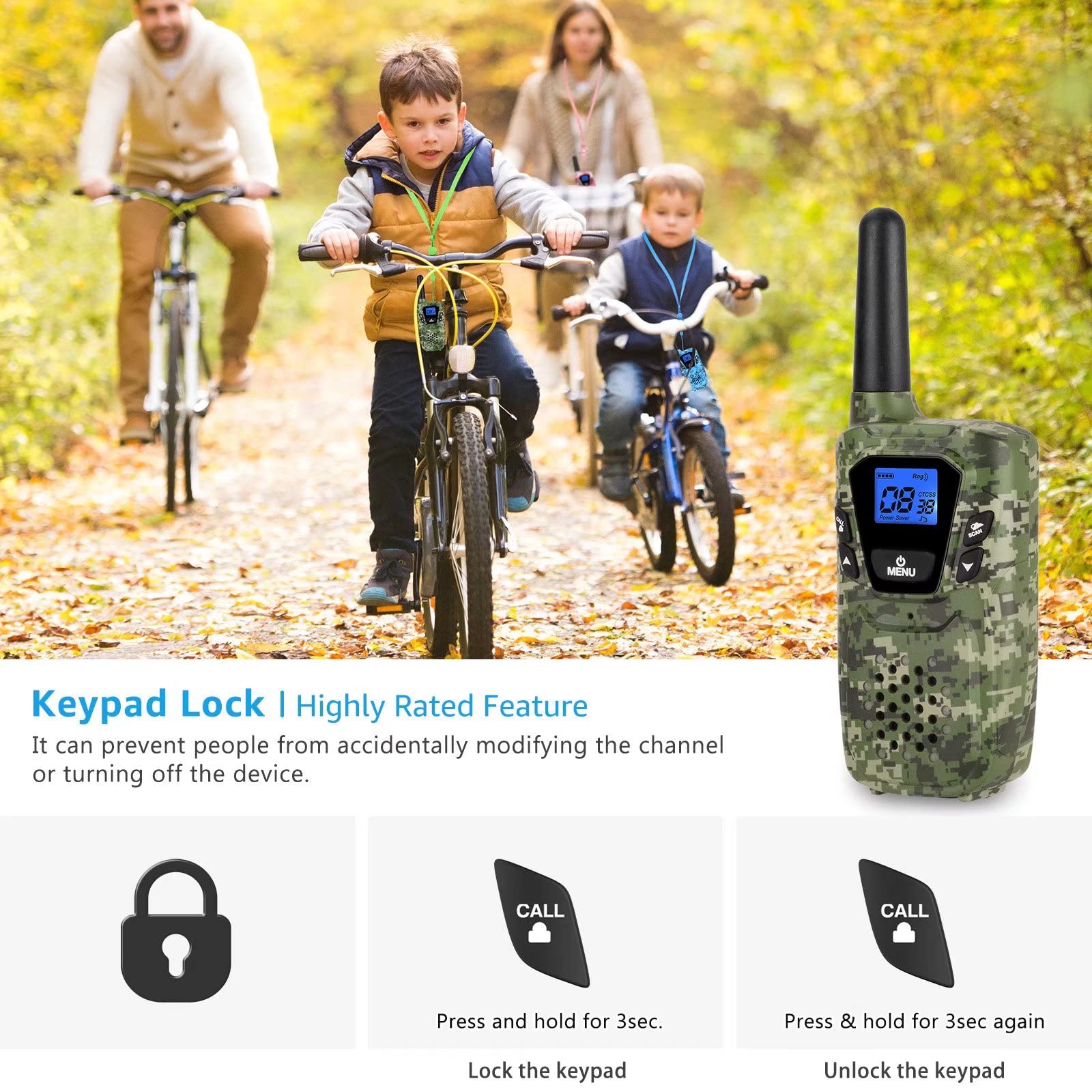 - u3010Simplicity At Its Bestu3011uff1aCrafted with care, the drop-proof walky talky is easy-to-use with just 1 quick step. No complicated instructions, just instant communication at your fingertips. Ideal for children, seniors, and everyone in between. Personalize your channel and let the conversations flow. You can also lock the keypad to prevent accidental changes to the channel or turning off the device