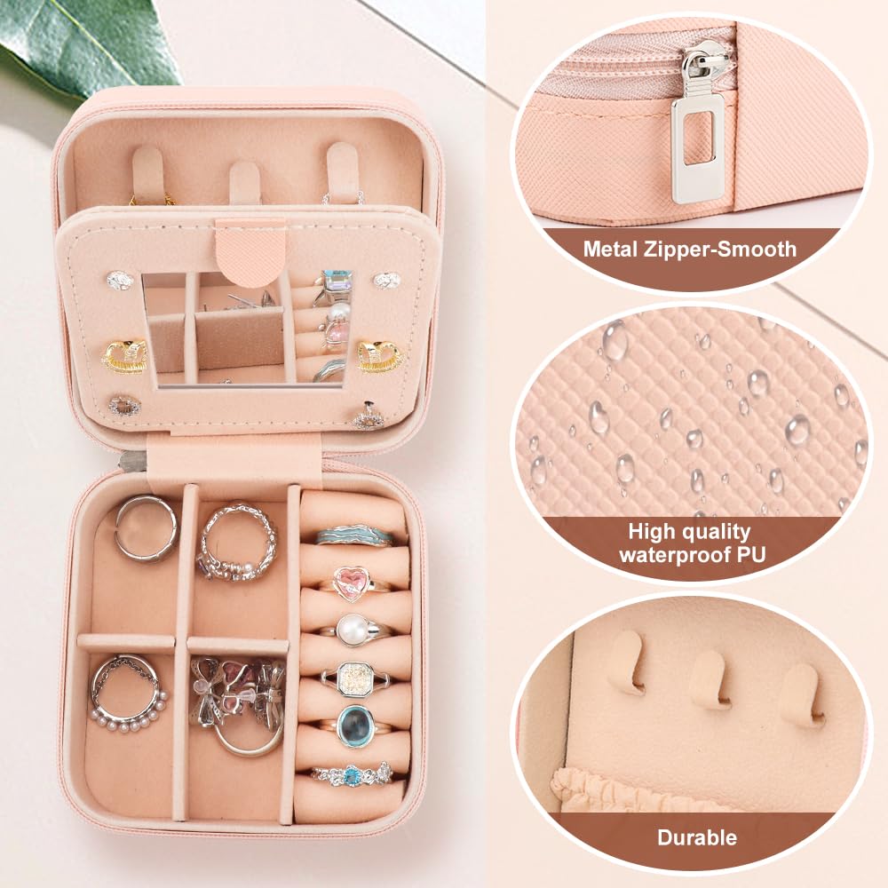 - u3010Quality Materialu3011The interior of this jewelry box is covered with pink velvet for a skin-friendly and luxurious touch, and it also comes with a mysterious earring compartment and a small built-in mirror to meet your jewelry storage needs. The exterior is made of premium PU leather with fine texture and near leather, blending classic and fashion, showing high quality and taste.
