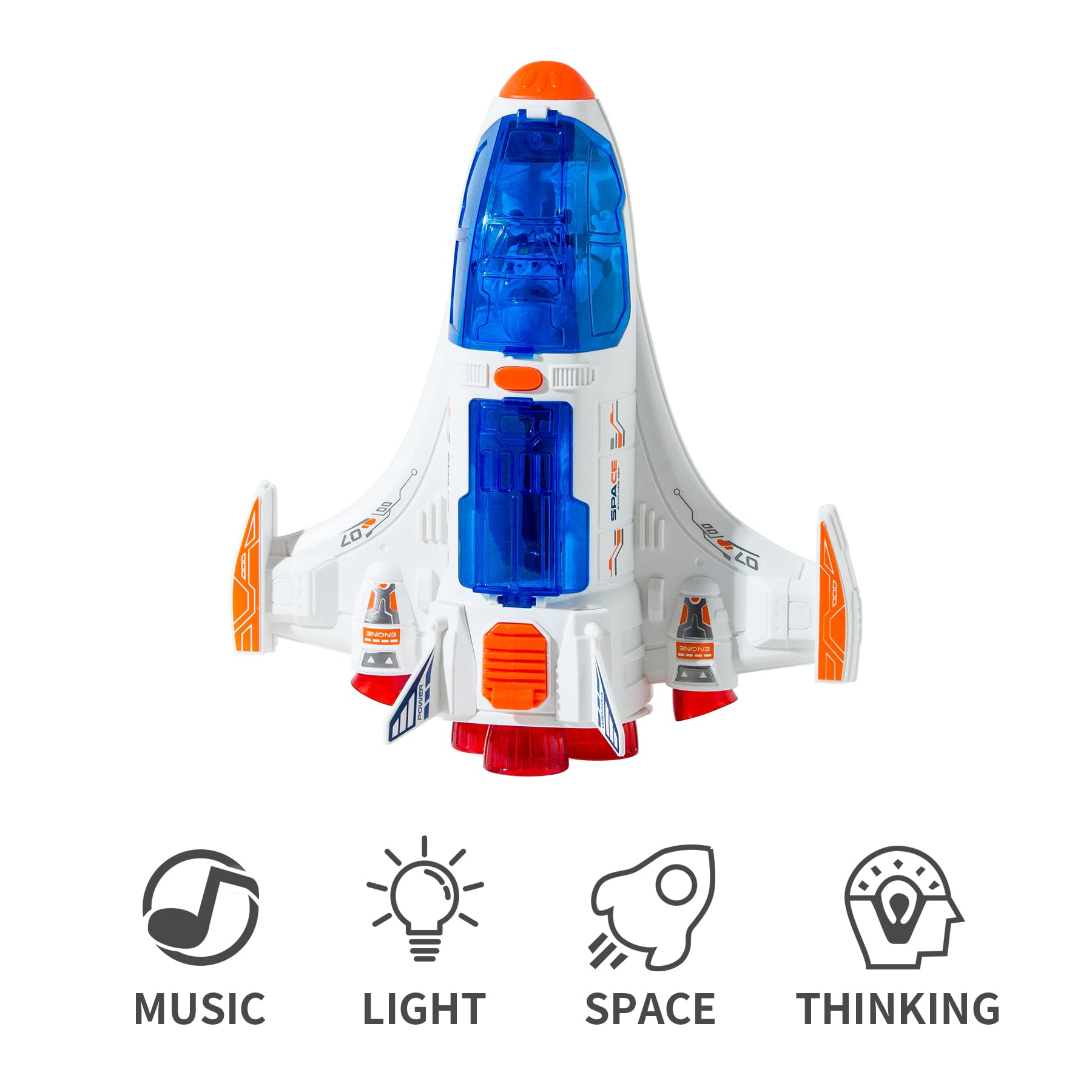 - Safe and Durable- The space shuttle is made of safe and high-quality ABS plastic material, rounded corner space toy design, to ensure the safety of children. Requires 3 AA batteries, not included. This space Shuttle space rocket toy is a great choice to help kids learn more about aerospace.