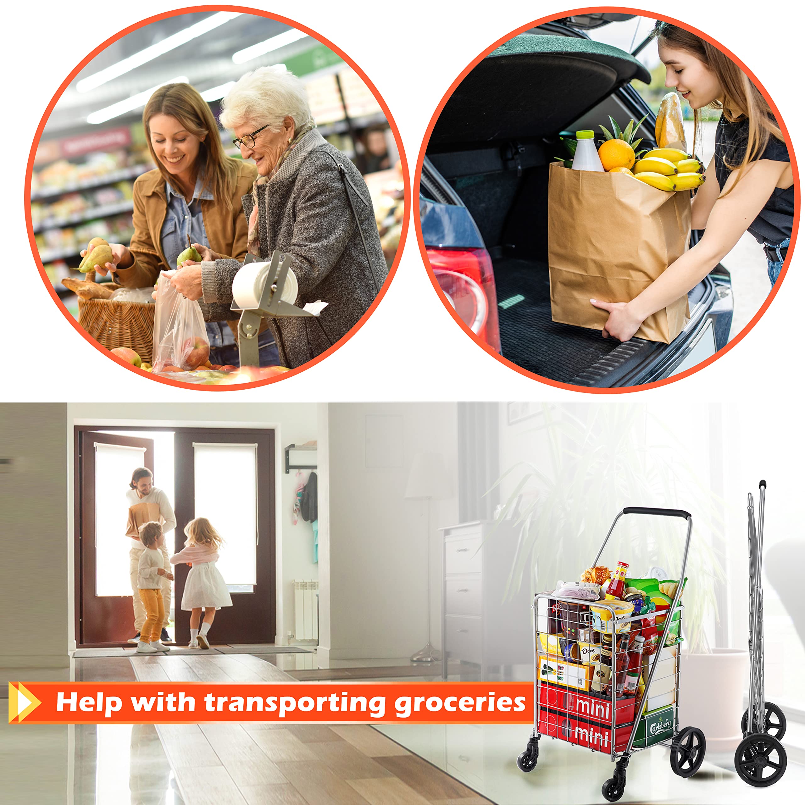 - FOR ALL YOU NEEDS: This lightweight and sturdy folding utility cart isnu2019t just for shopping in groceries stores. Our heavy duty shopping cart makes for a more practical and efficient alternative to laundry baskets, grocery carts, tool storage and so much more to save you time, effect and energy for a more convenient life.