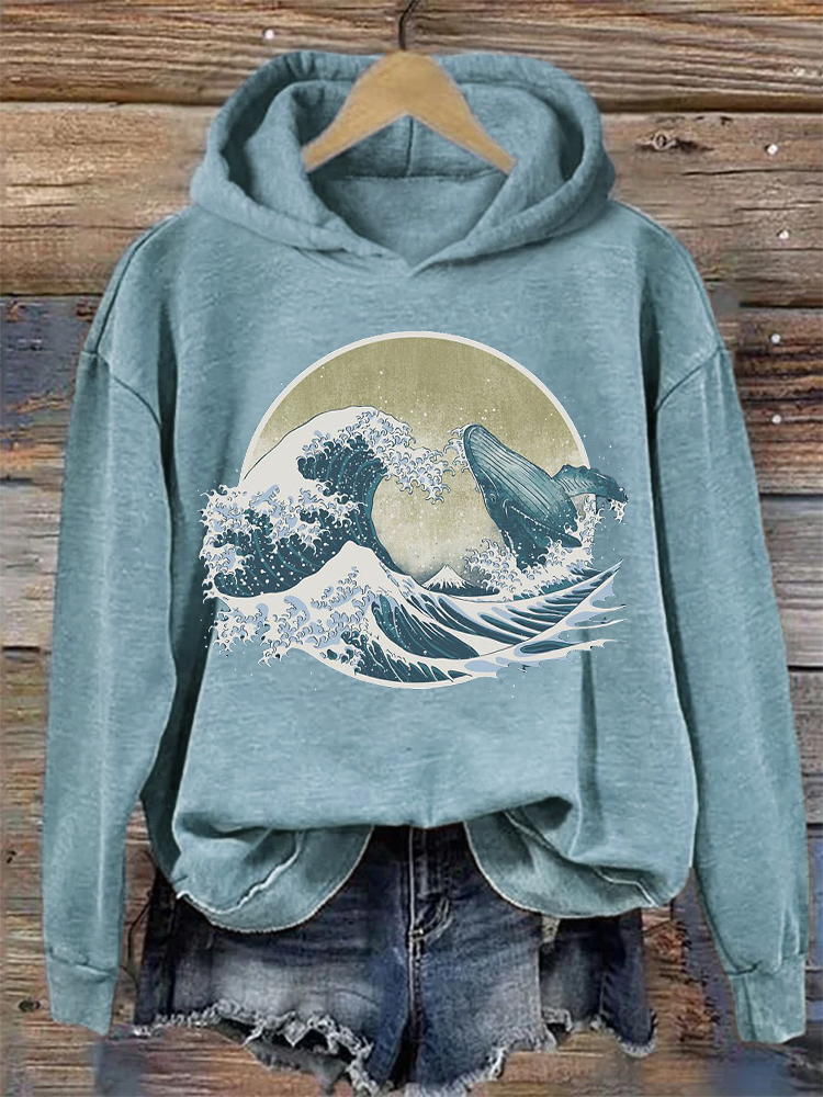 Whale Breach Japanese Art Vintage Hoodie