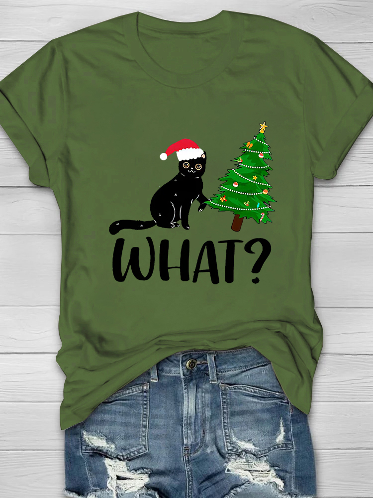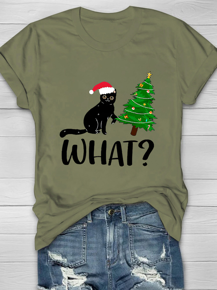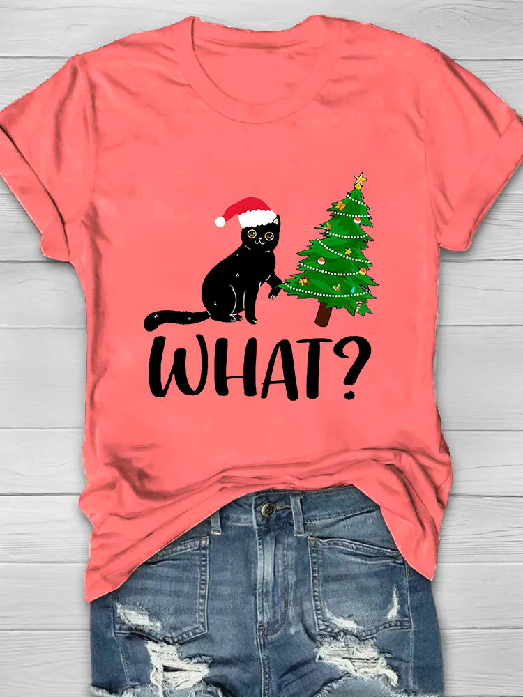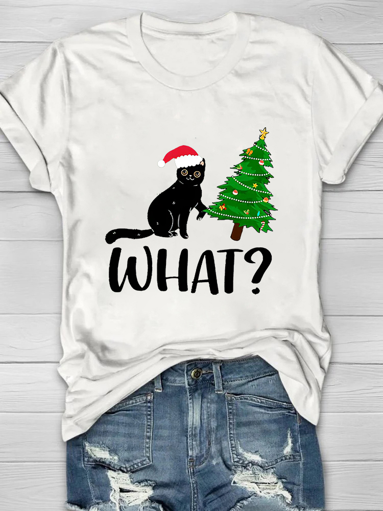 • What? Christmas Cat Printed Women's Crew Neck T-shirt