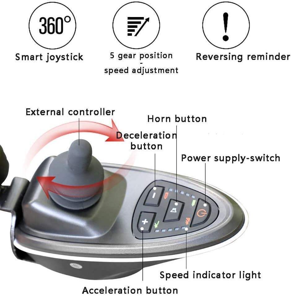 - Intelligent operation: use the 360 joystick to control the 5-speed speed monitor the power at any time and reversing the voice prompt