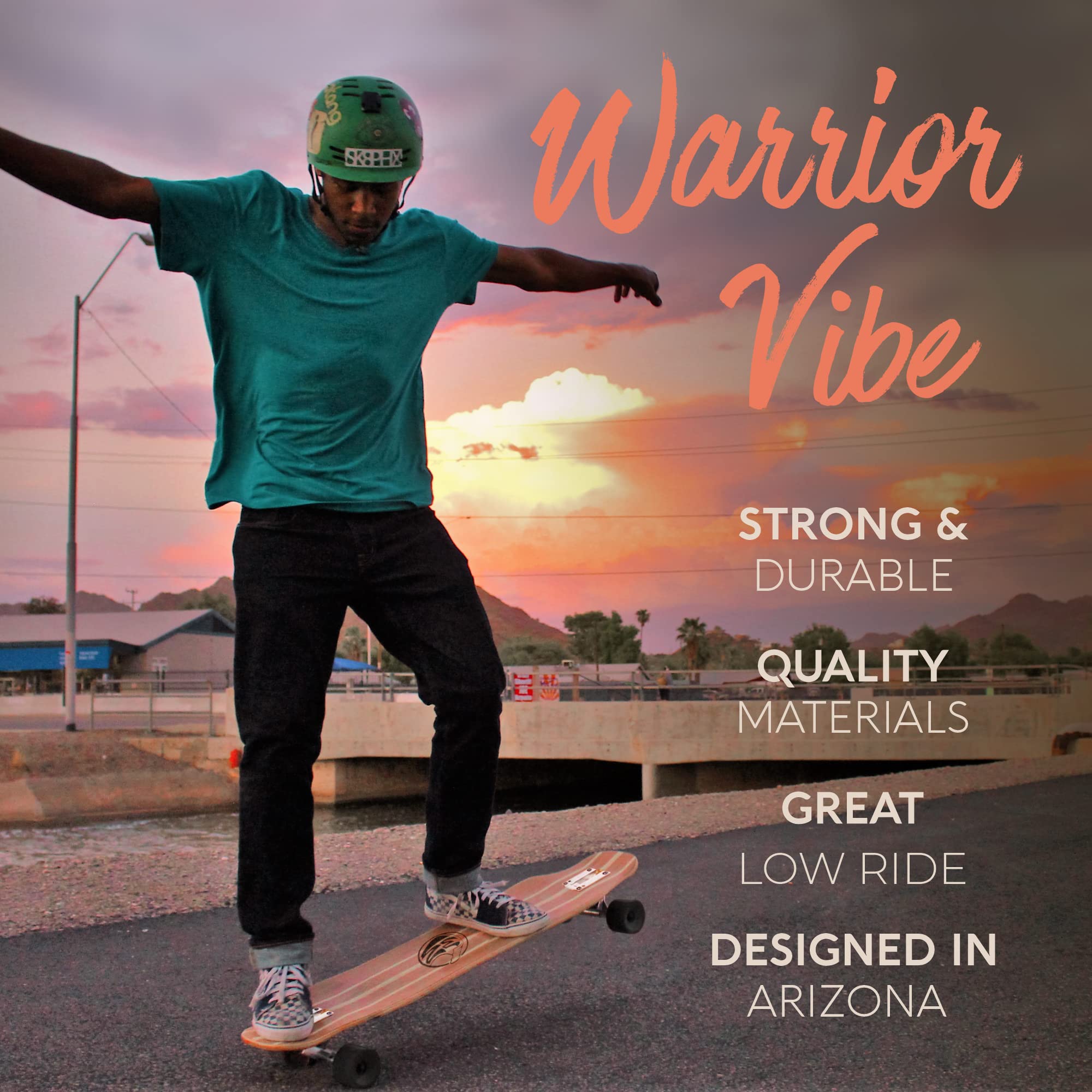 - White Wave Warrior: An easy to ride adult longboard with Drop Through Trucks and Drop Down Deck. This cruiser board is great for carving in the neighborhood, on campus or cruising the coastline. The mild concave, low center of gravity, and symmetrical shape is ideal for easy maneuvering.