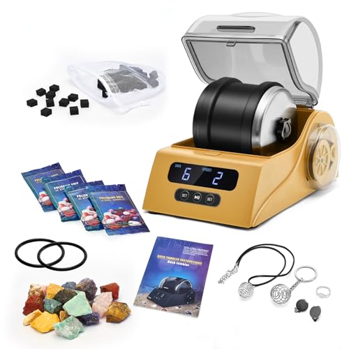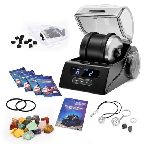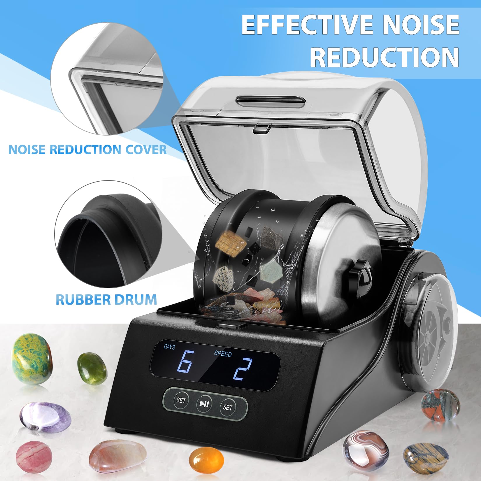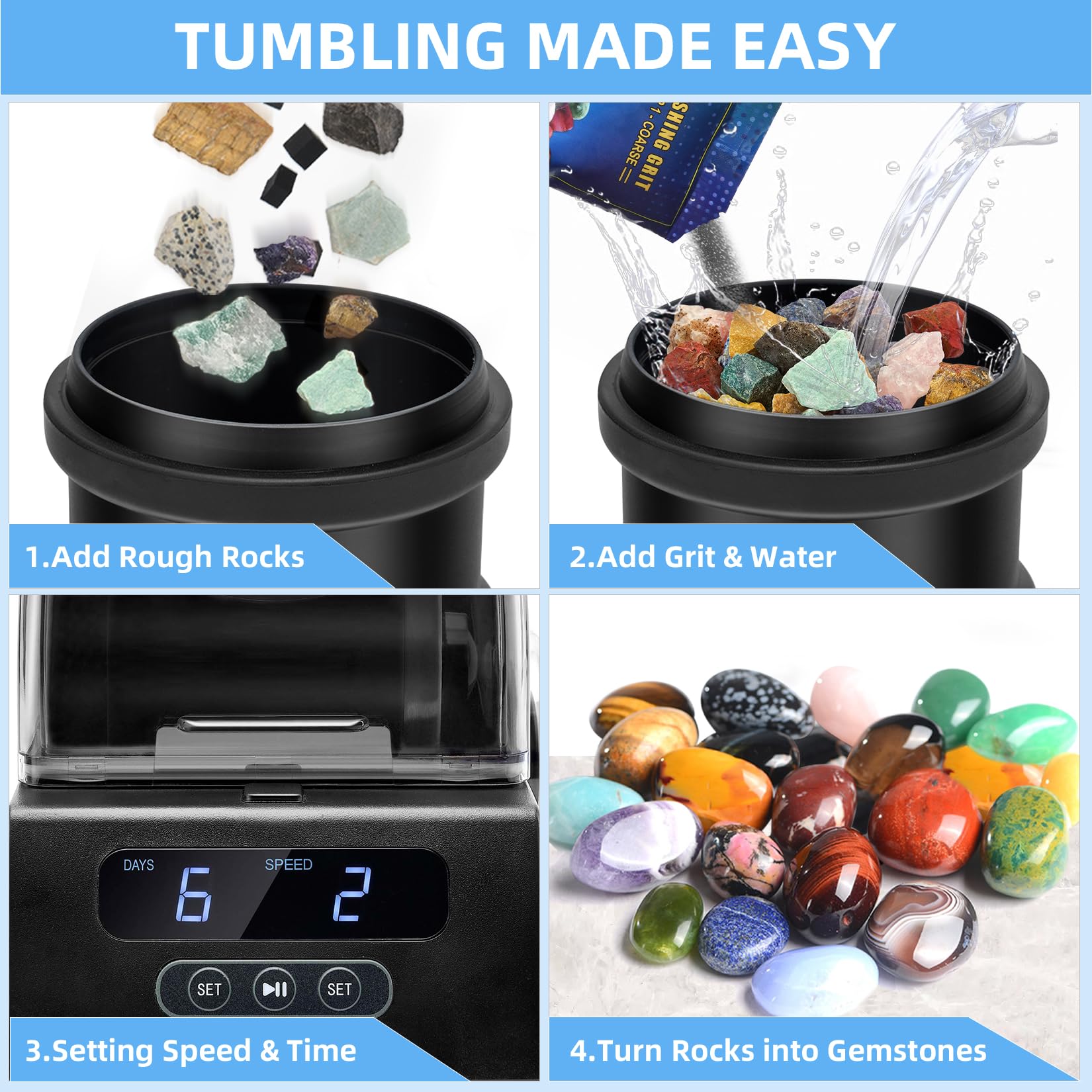 - EASY TO USE & EDUCATION - Digital 2-Speed setting & 7-day timer, There are 3 processes in Setting for grinding stones(according to instructions). The rock tumbler with color printing instructions leads you to operate the tumbler machine step-by-step, telling you the fascinating story of the gemstones, which is a good material to read for your kids, A Great STEM Activity.
