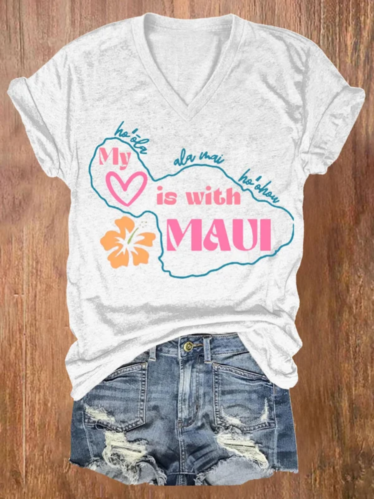 Women's Maui Strong My Heart Is With Maui Print Short Sleeve T-Shirt