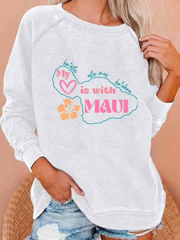 Women's Maui Strong My Heart Is With Maui Print Sweatshirt