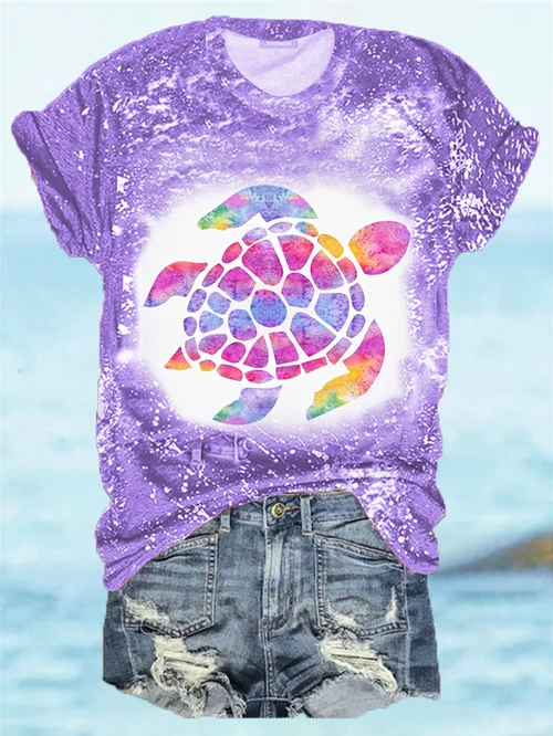 • Women's Water Color Sea Turtle Bleach Print Tee