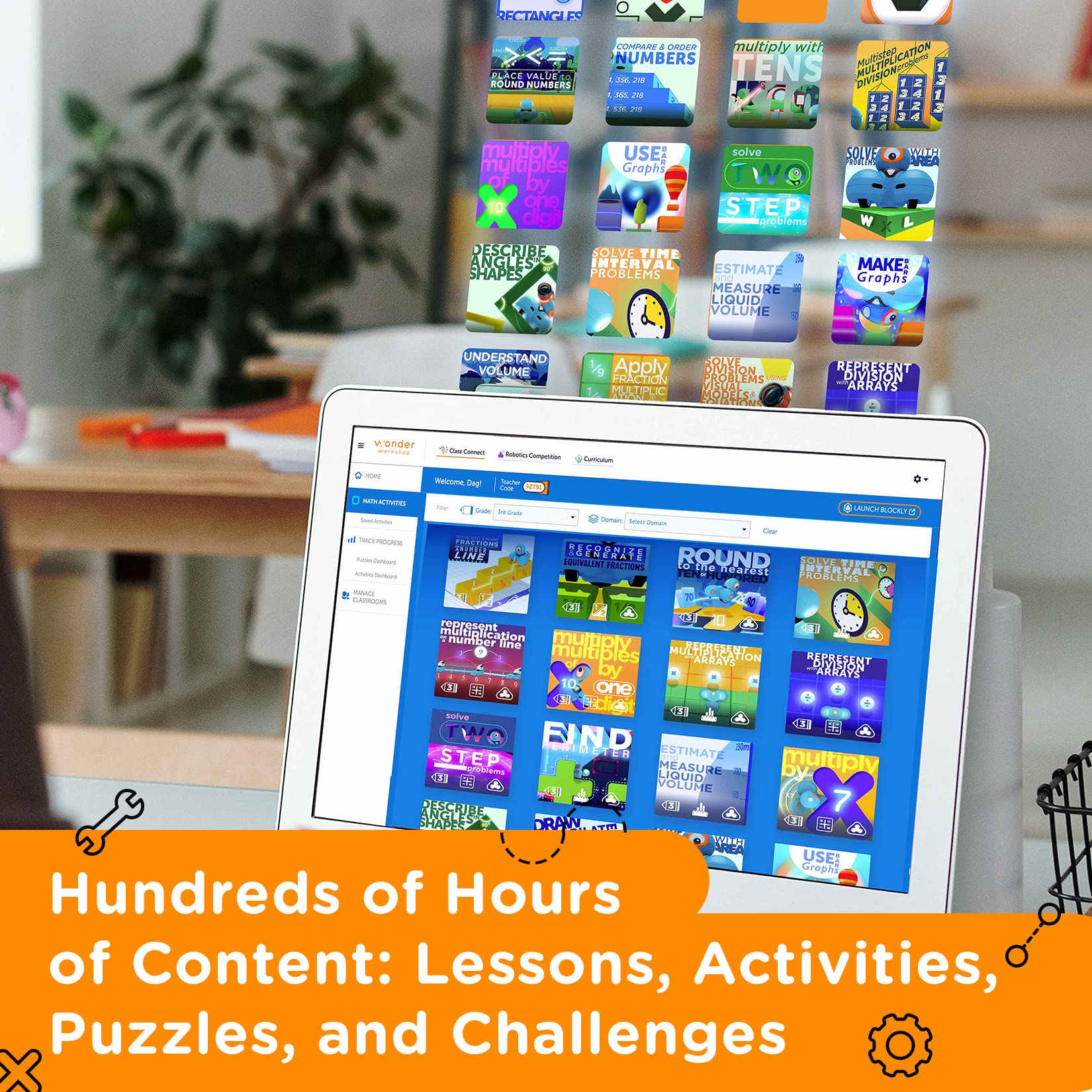 - Using the apps, children learn coding concepts like sequencing, events, loops, algorithms, operations, and variables through self-directed play and guided challenges