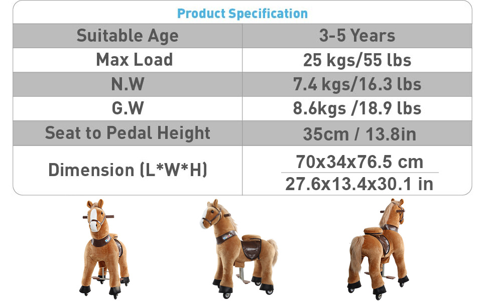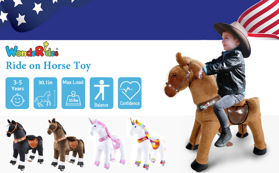 - u3010Suitable Rangeu3011WondeRides ride-on horse toy are made with pride, quality and workmanship. Build with Sturdy Metal and Steel Structures and Mechanisms that can easily hold up to 55 lbs for 3-5 years old.