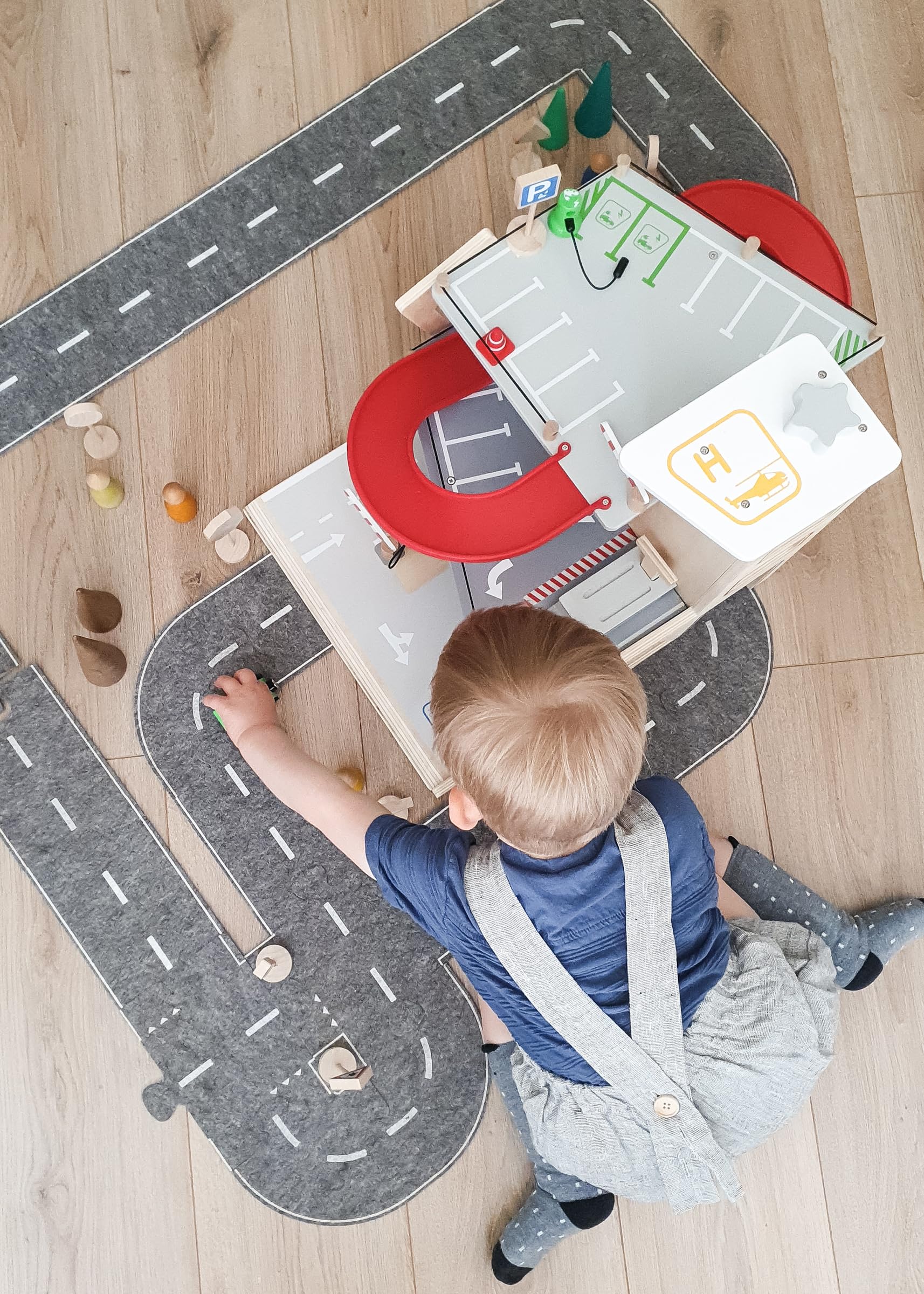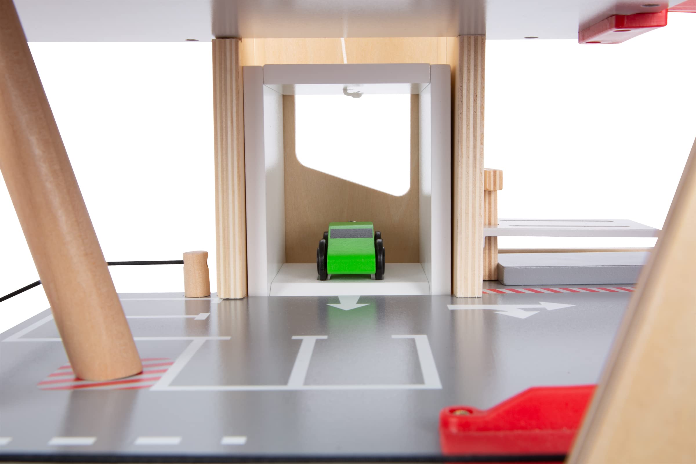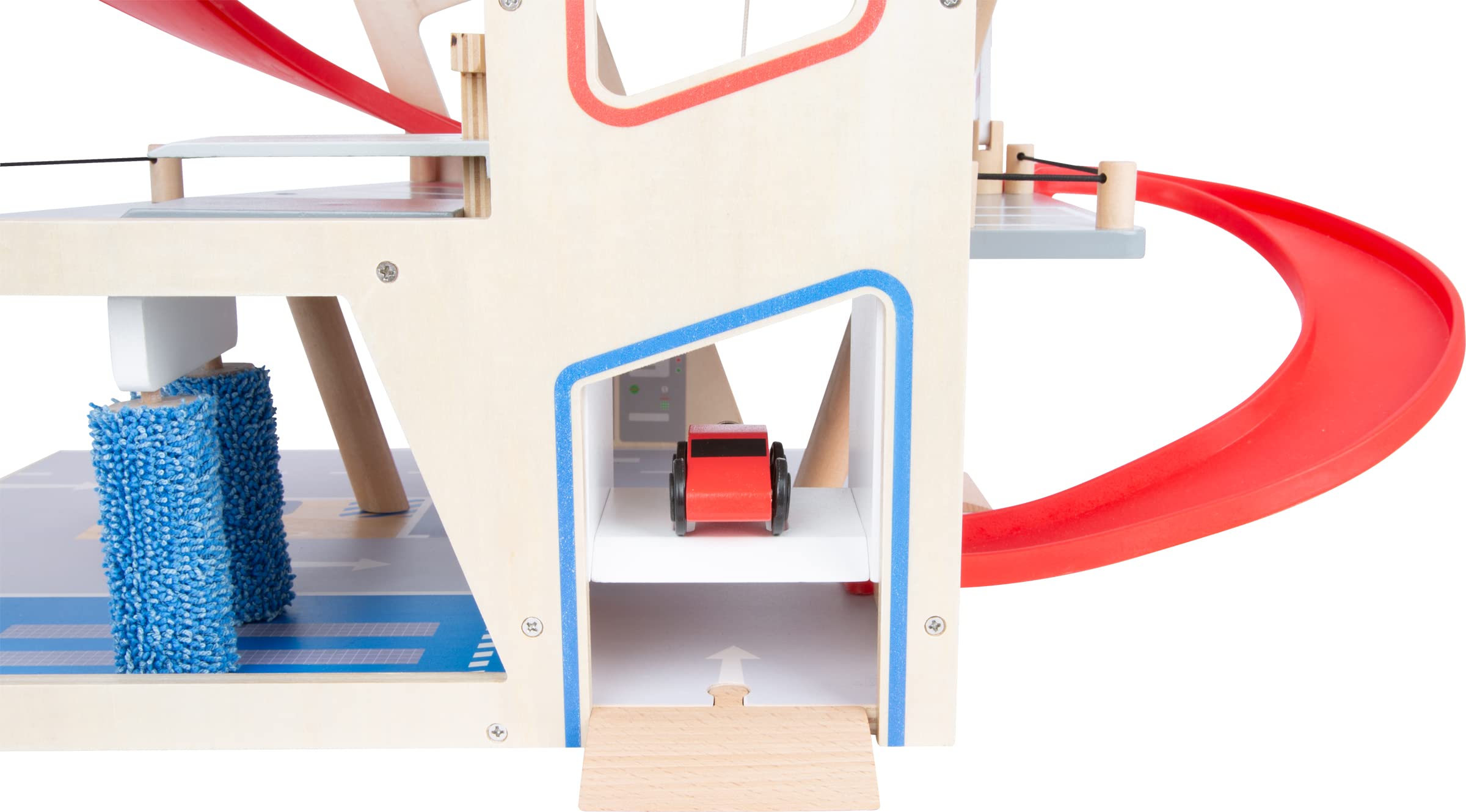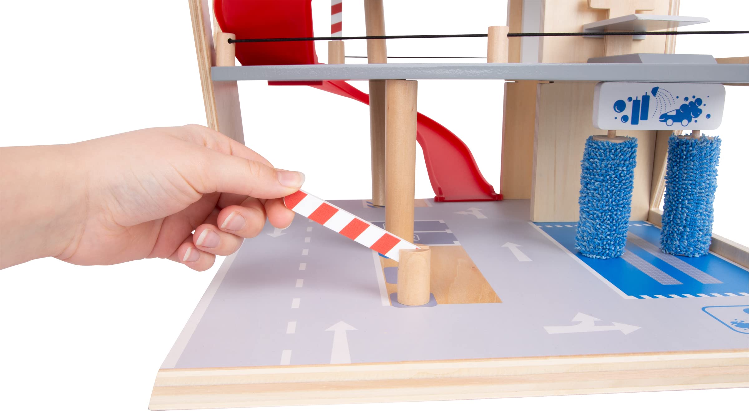 - ONE CAR PARK, SO MANY POSSIBILITIES u2013 Parking, refueling, washing, repairing. The 3-level playset includes 2 cars, a height-adjustable lifting platform, fuel pump, 2 ramps, moving car wash & electric car charger.