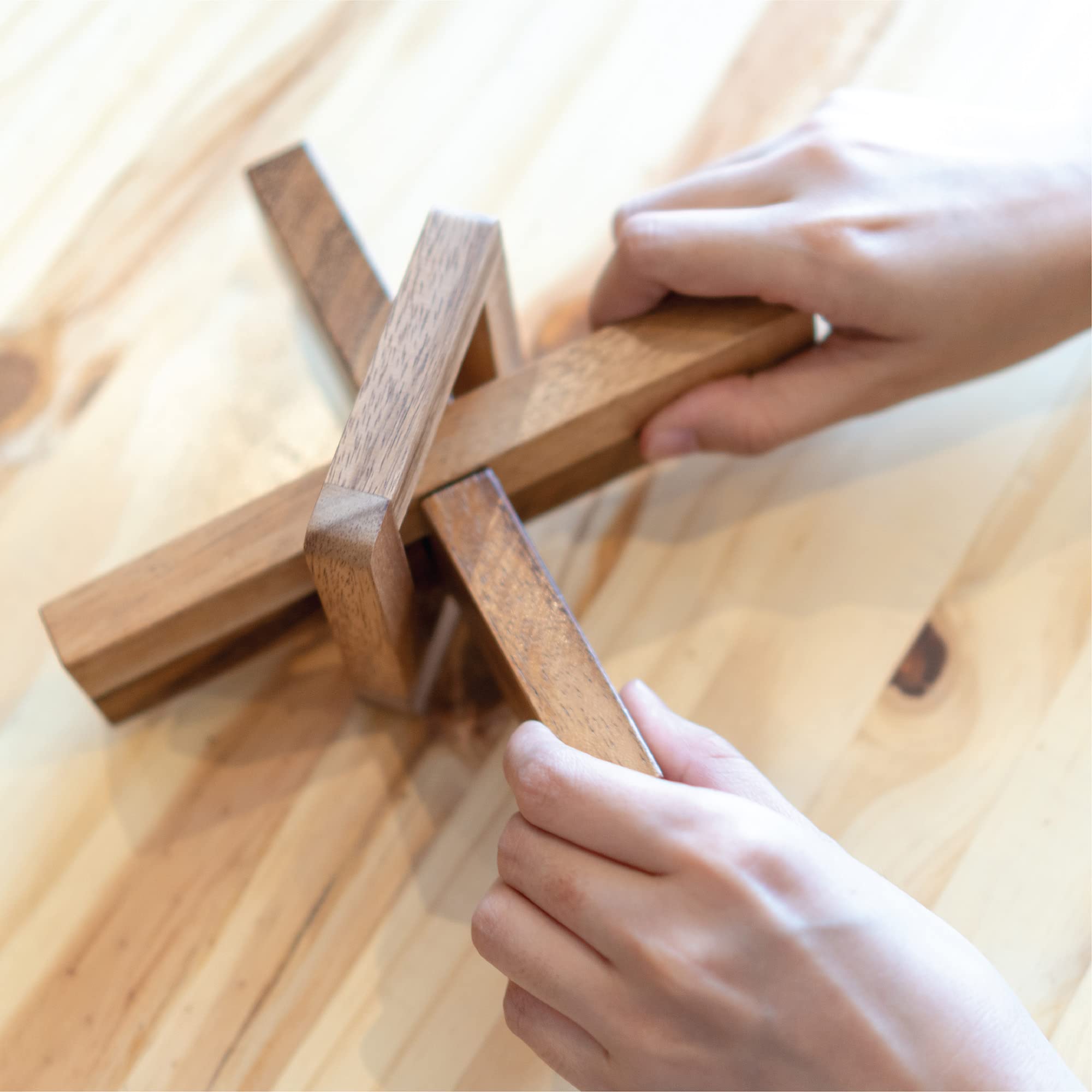 - 3D PUZZLES FOR ADULTS BRAIN GAMES IN WOODEN DESIGNS - The great logic wood puzzles brain teasers for kids and adults are made of 100% natural wood. Natural wood has been used, and every piece of the set is handcrafted with great precision to ensure an easy and correct fit. The wood is hypoallergenic and chemical free with no discernible odor.