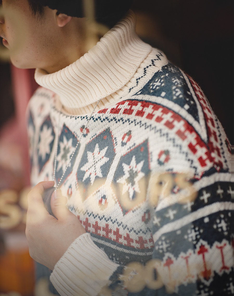 Workwear Retro Fair Isle Jacquard Warm Men's Sweater
