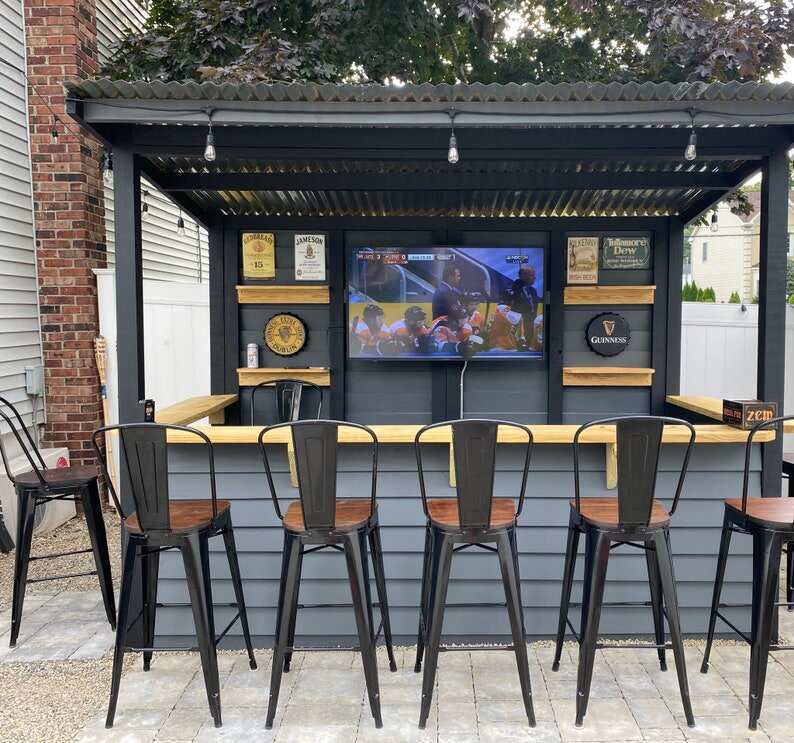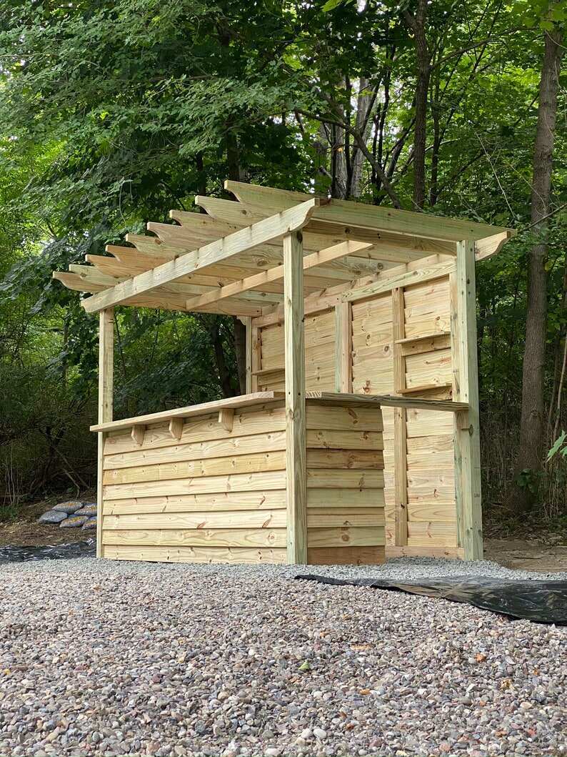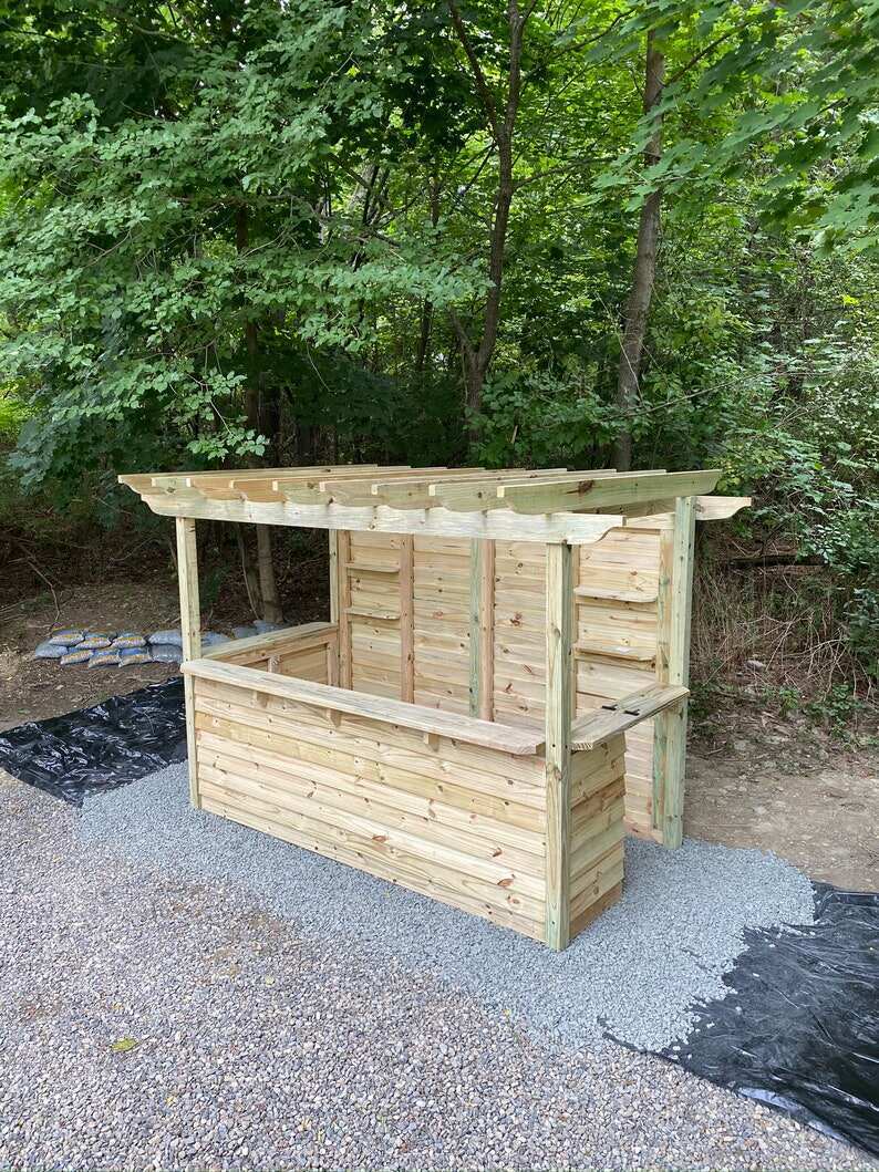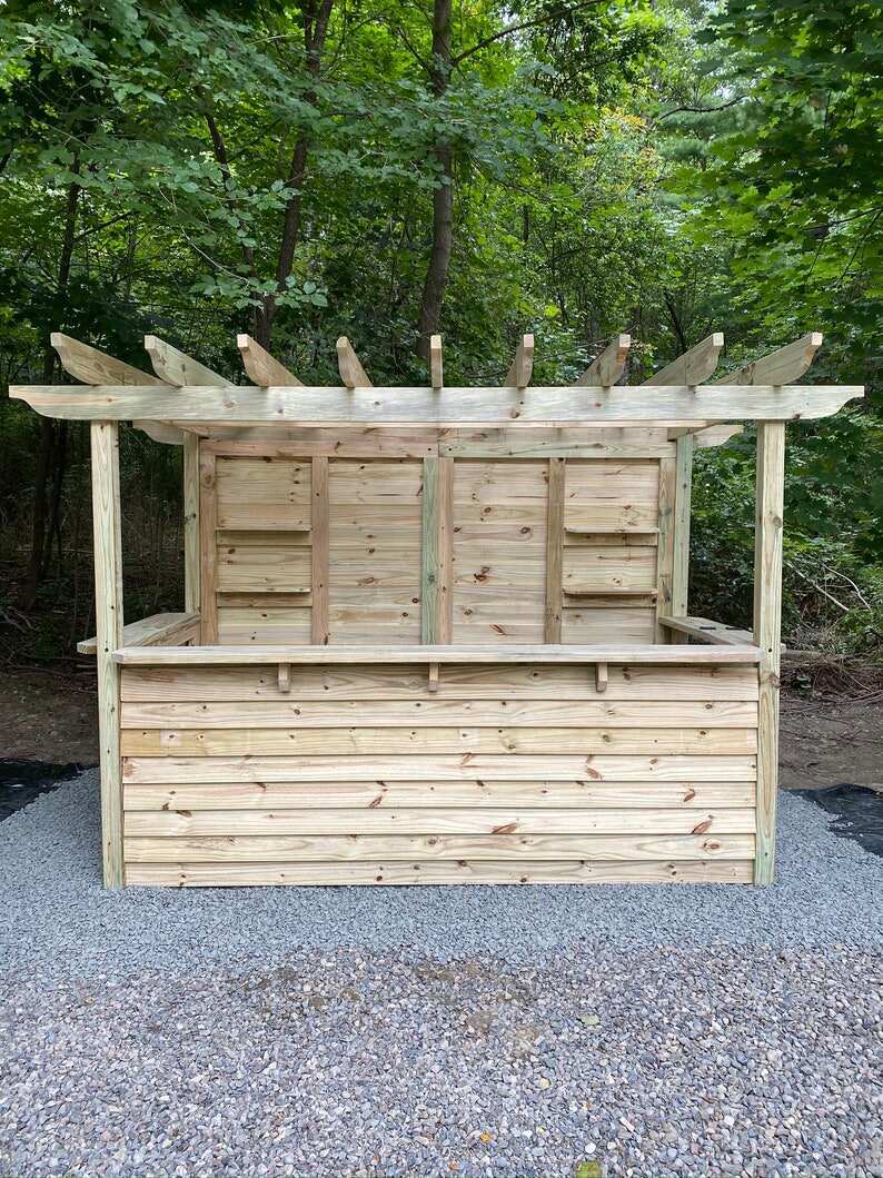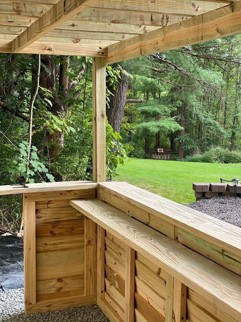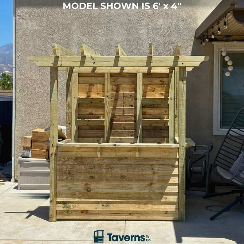 Wow your friends and family with your very own Yard Bar! At Taverns-To-Go we're fabricating, delivering and installing custom built bars for our customers across the country*. Meet the Open Bar - our open roof pergola model! Available in our (3) standard sizes, there is plenty of space to stock it with your favorite beverages and sit around to enjoy. The structures are built with the best of quality, pressure treated lumber and can be stored outdoors throughout the year. Customers can easily stain their finished products to achieve the best look for their backyard (as shown in the photos). We do not offer a painting or staining service.