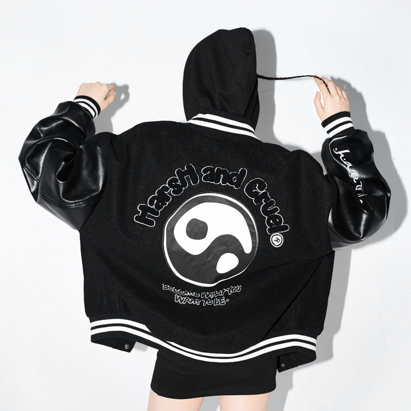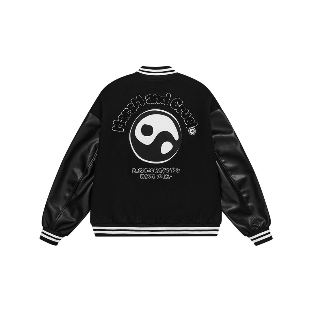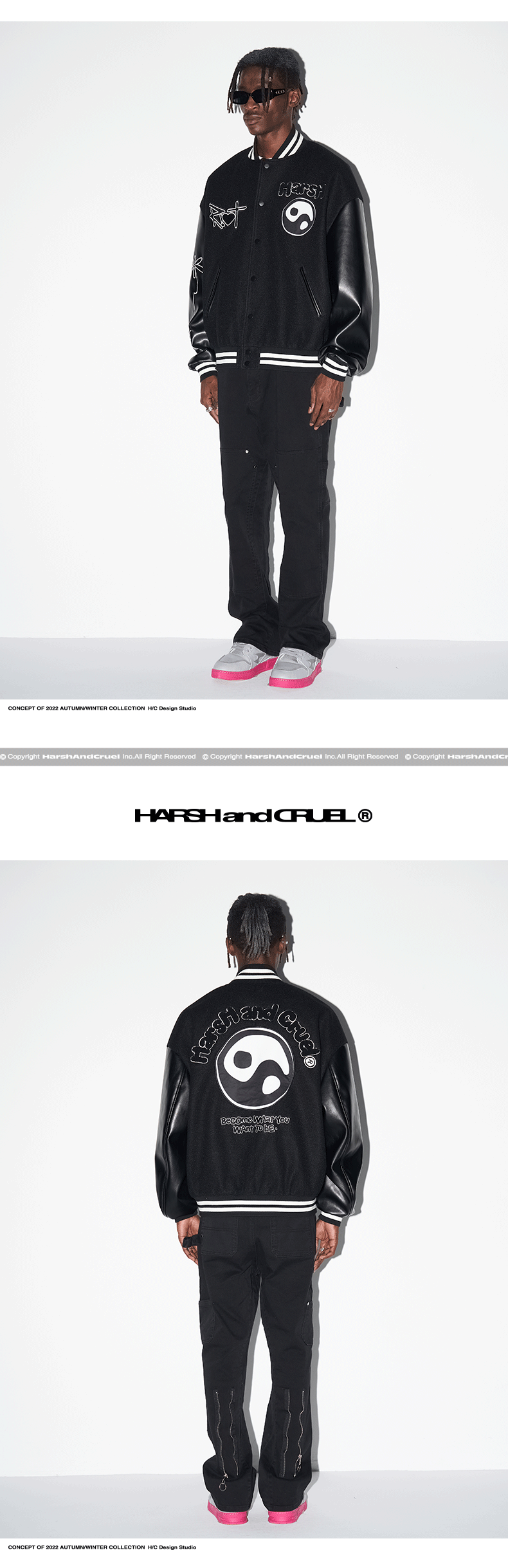 • H/C Ying-Yang Embroidered Logo Varsity Jacket