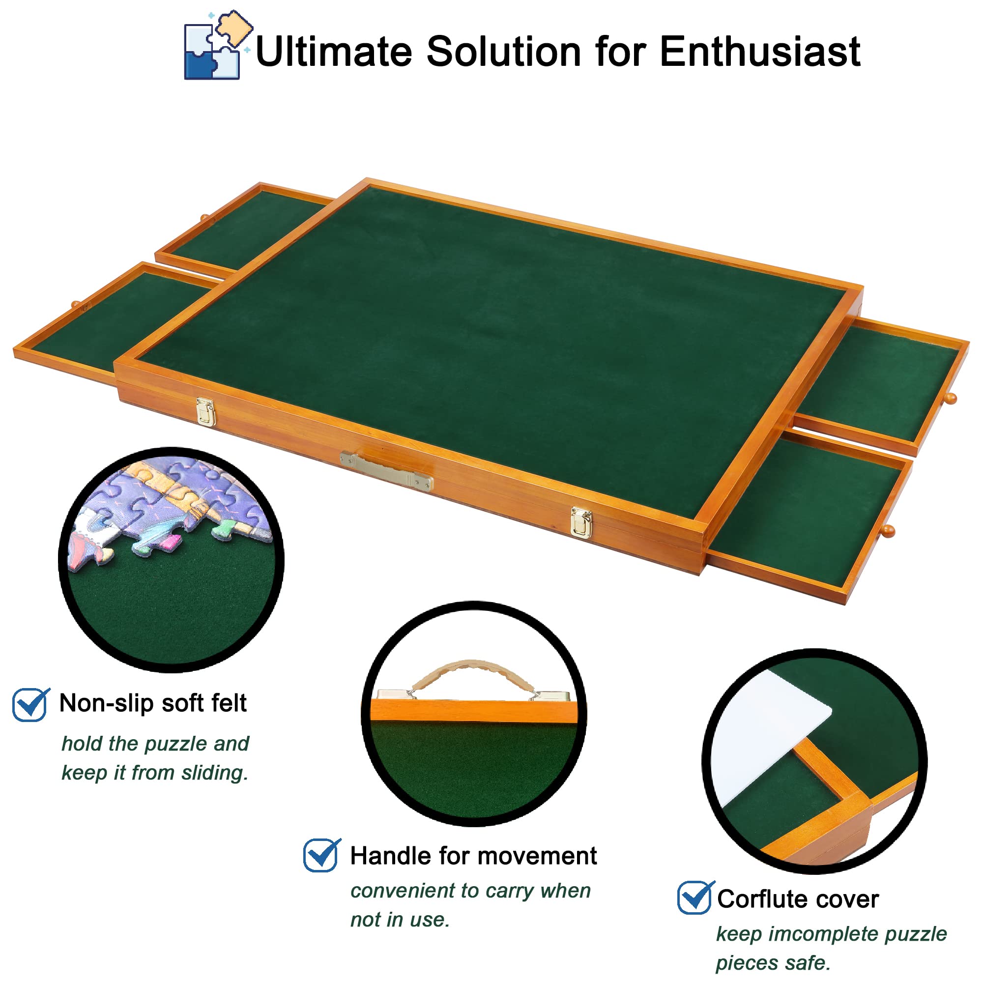 - ud83eudde9Versatile Cover: The included cover serves a dual purpose by not only protecting your in-progress puzzle but also enabling you to use the board as a flat surface for other activities. Whether you need a dedicated puzzle space or a versatile tabletop, this puzzle board table adapts to your needs.