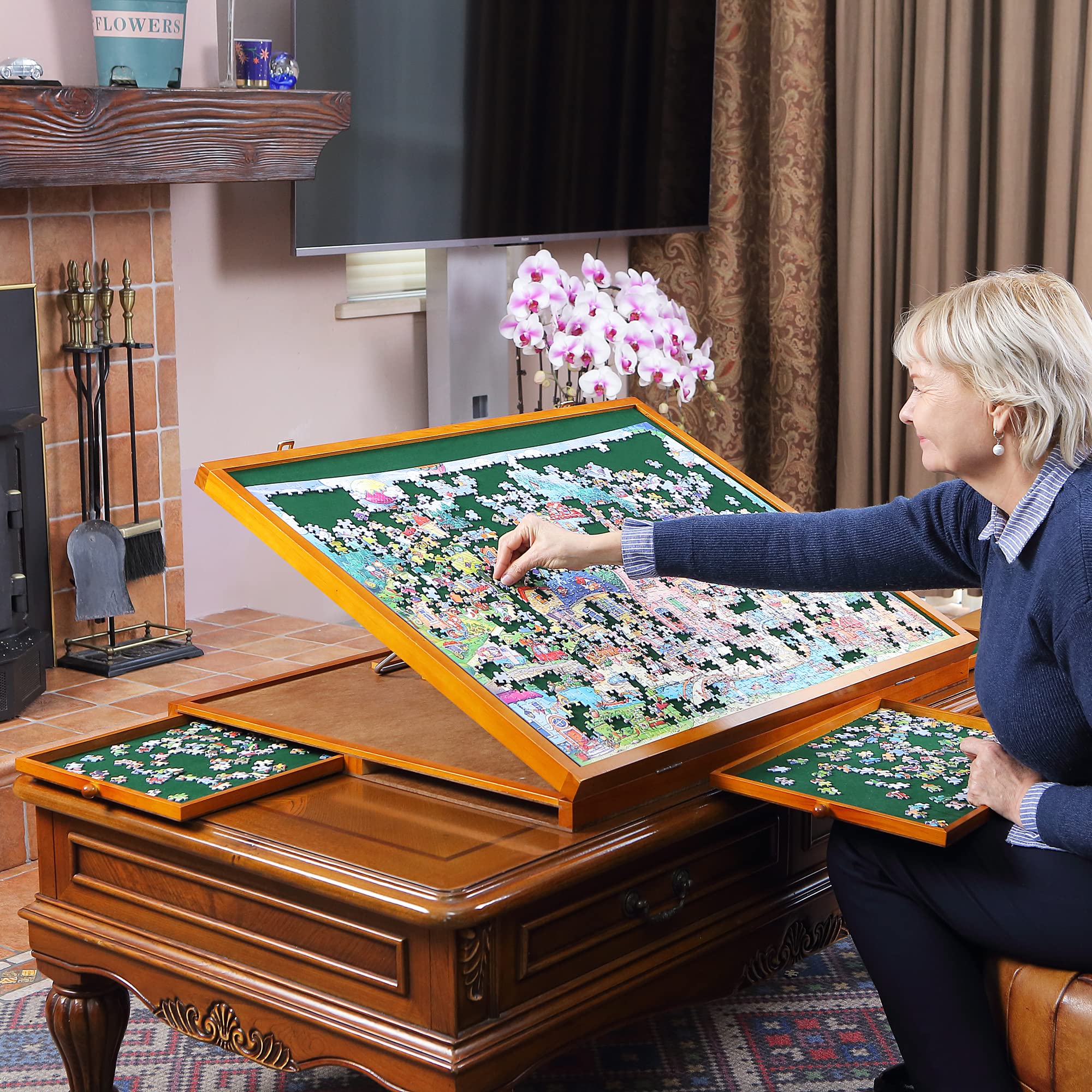 - ud83eudde9Organized Puzzle Solving: Equipped with convenient drawers, this puzzle board table helps you keep your puzzle pieces organized and easily accessible. The integrated storage ensures that you can neatly store and sort your puzzle components, preventing any loss or mix-up during the assembly process.