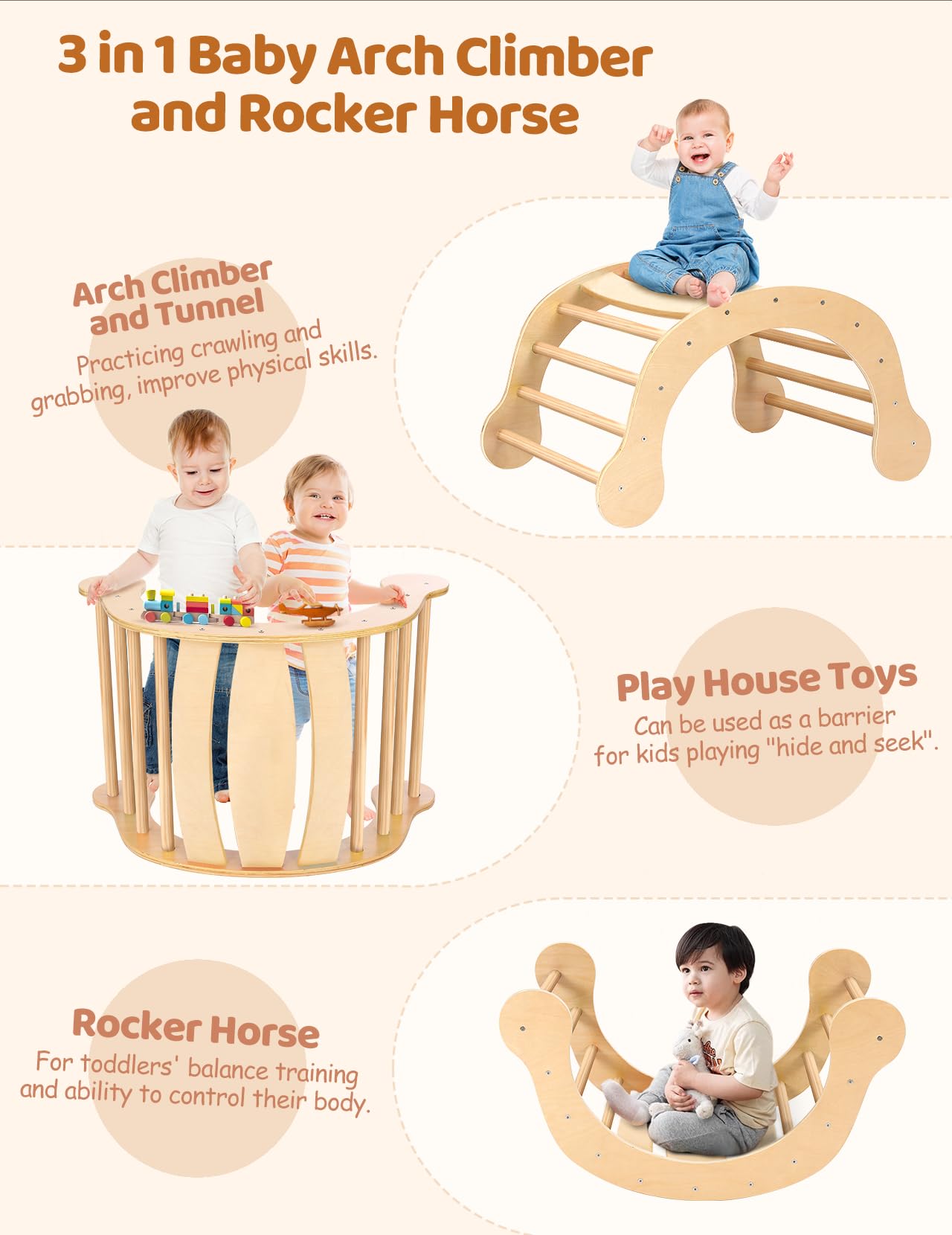 - ud83cudf85u3010ud835udfd5-ud835udc22ud835udc27-ud835udfcf ud835udc0cud835udc28ud835udc27ud835udc2dud835udc1eud835udc2cud835udc2cud835udc28ud835udc2bud835udc22 ud835udc02ud835udc25ud835udc22ud835udc26ud835udc1bud835udc22ud835udc27ud835udc20 ud835udc13ud835udc28ud835udc32u3011ud83cudf81 This pikler triangle set consists of 3 parts, it can be used as a triangle or arch climber, rocking chair, balance board, climbing bridge etc. Different combinations will bring various fun, and keep your little ones away from the smartphone/tablet screens. Besides, Montessori climbing toys aim to boost their sensory skills, learn body awareness, promote exploration, and become more independent.