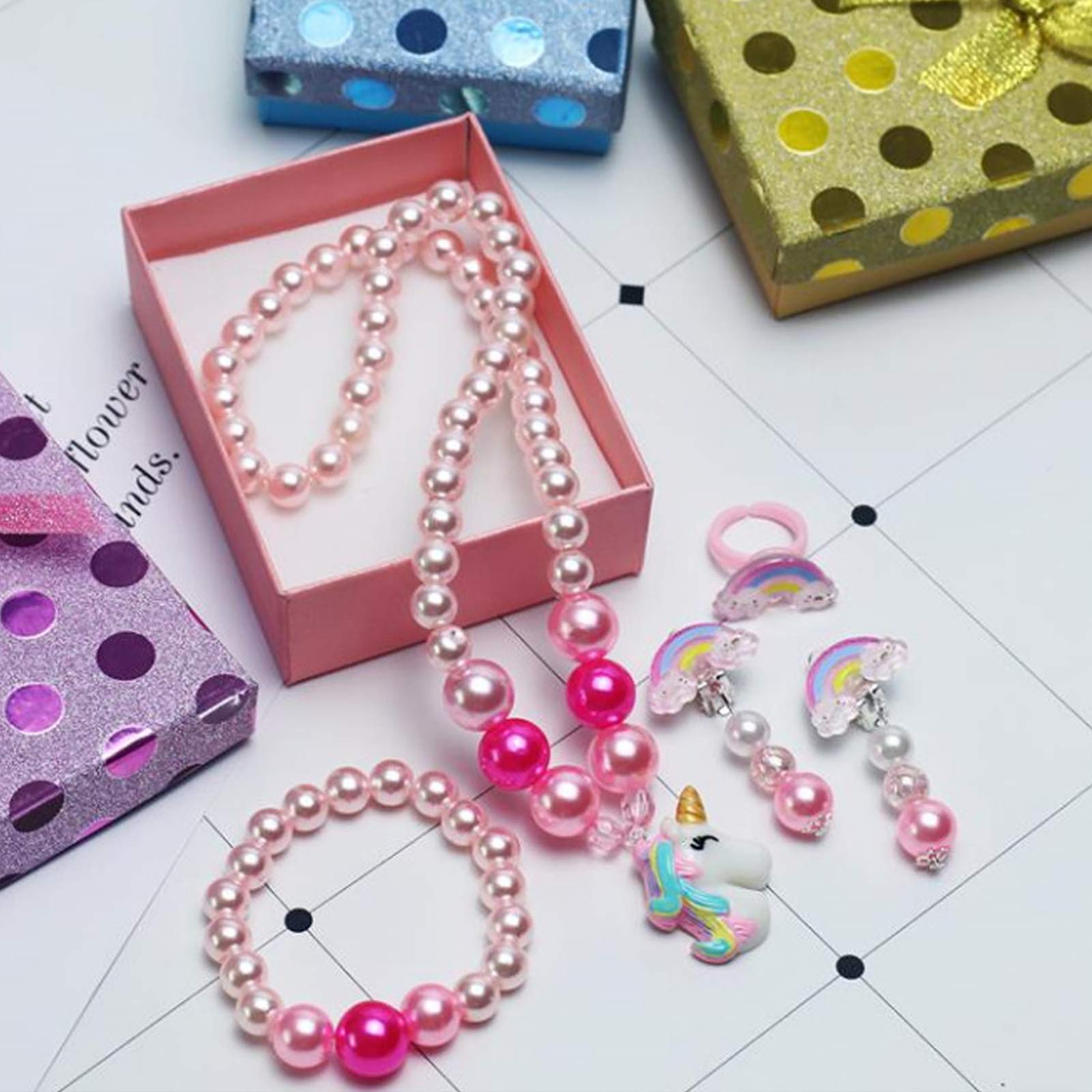 - u2764You Will Get 8 Quality Dress-up Accessories -- Unicorn bag (6.3ins X 7.5ins) X 1, Unicorn pendant pearl necklace X 1, Pearl bracelet X 1, Rainbow pearl eardrops X 1, Rainbow ring X 1, Unicorn headband X 1, Comb+mirror X 1, Rainbow wig braid X 1.