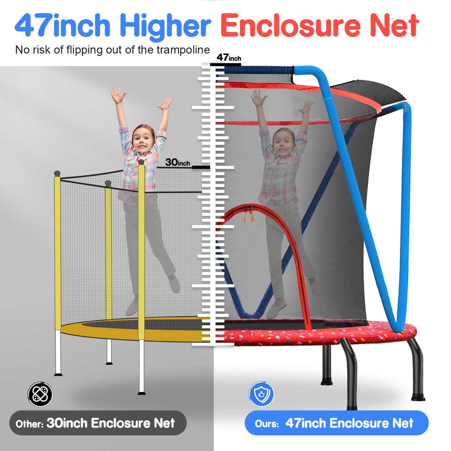 - u2764ufe0fu3010Higher and Safer Safety Netsu3011Our trampolines feature a 59-inch safety net, providing children with optimal freedom to jump without concern of falling off. Additionally, our high-weight protective net ensures durability and eliminates the need to worry about tearing.