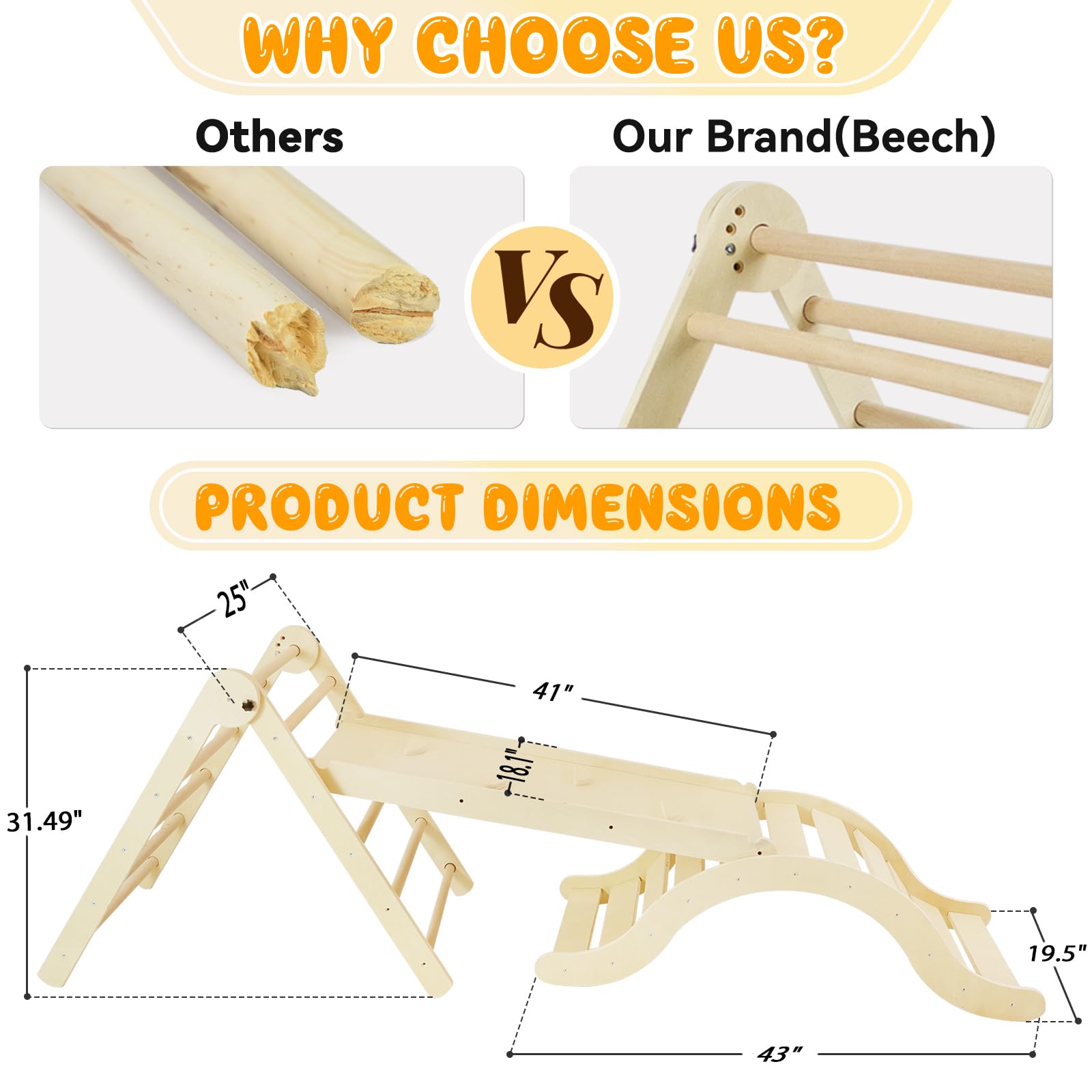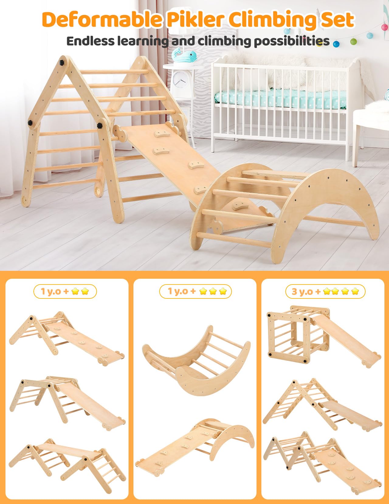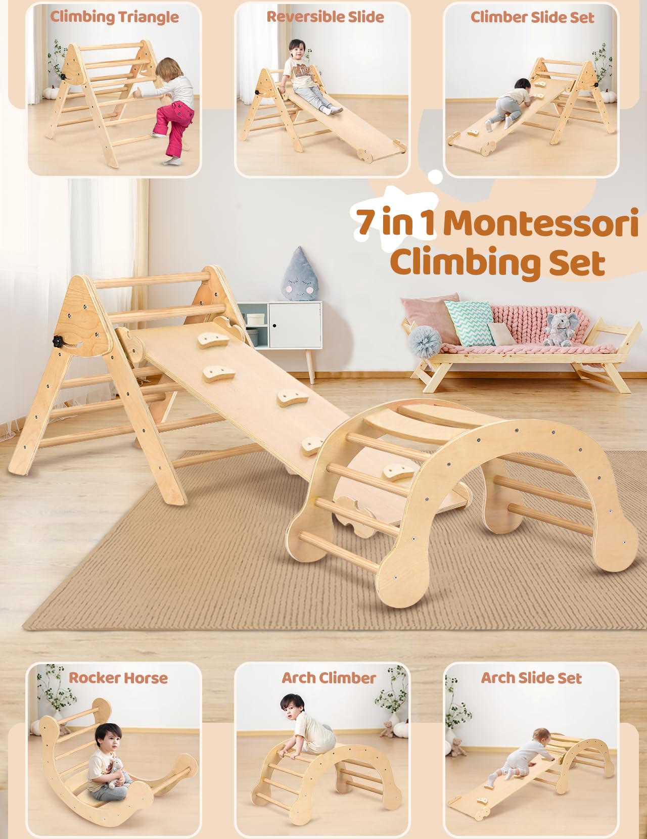 Natural Large 3 Pieces Climber Slide Arch Set