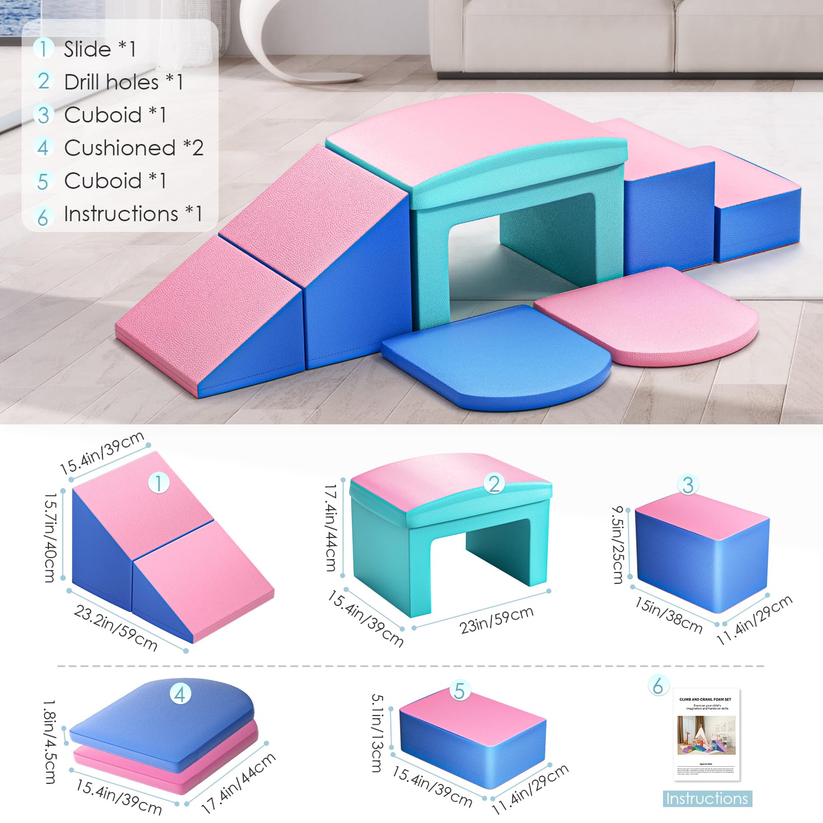 Colorful Large 2 Pieces Climbing Triangle with Slide