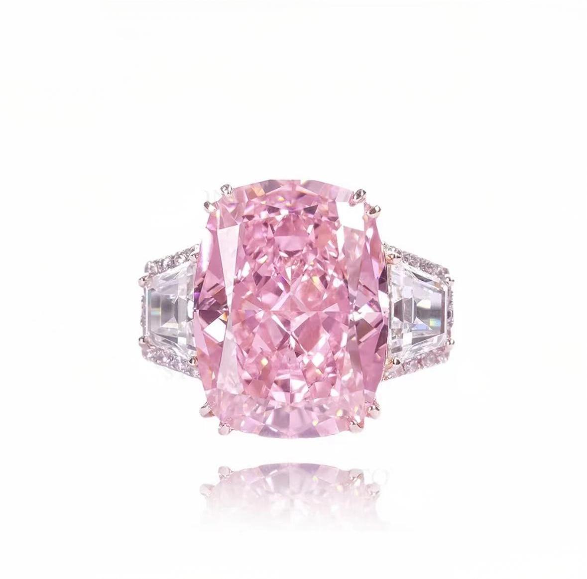 2.14 925 Sterling Silver Full Star River Oversized Pigeon Egg Pink Diamond Ring, Handmade with 266 Moissan Diamonds