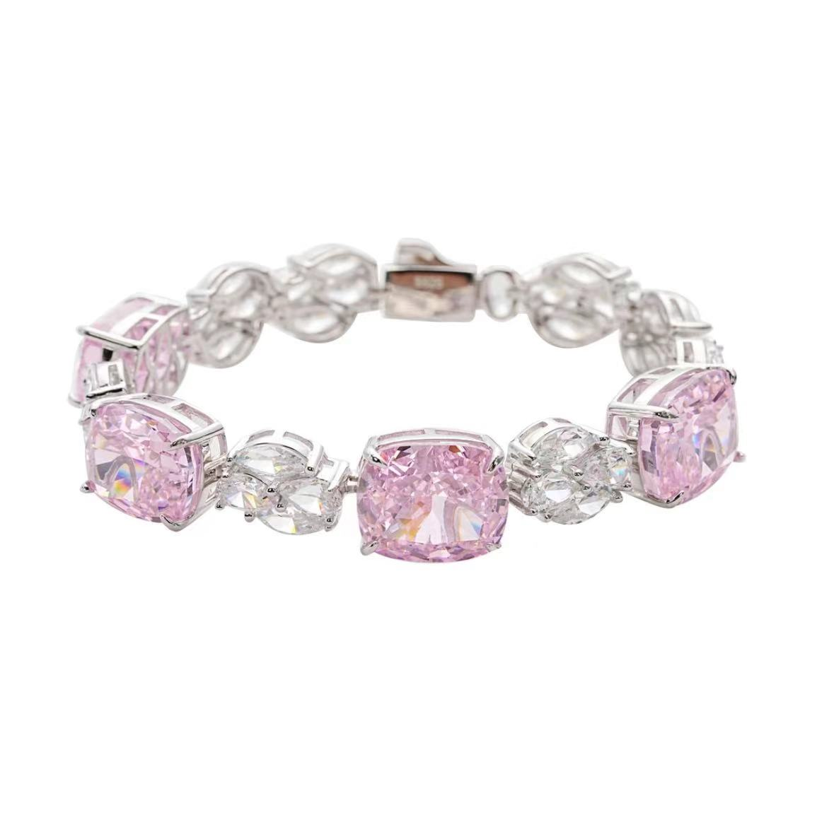 2.14 925 Sterling Silver Full Star River Pink Diamond bracelets, handmade with lab-raised beautiful pink moissanite diamonds