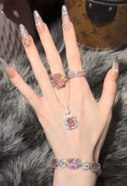 2.14 925 Sterling Silver Full Star River Pink Diamond Ring, Handmade with 266 Moissan Diamonds