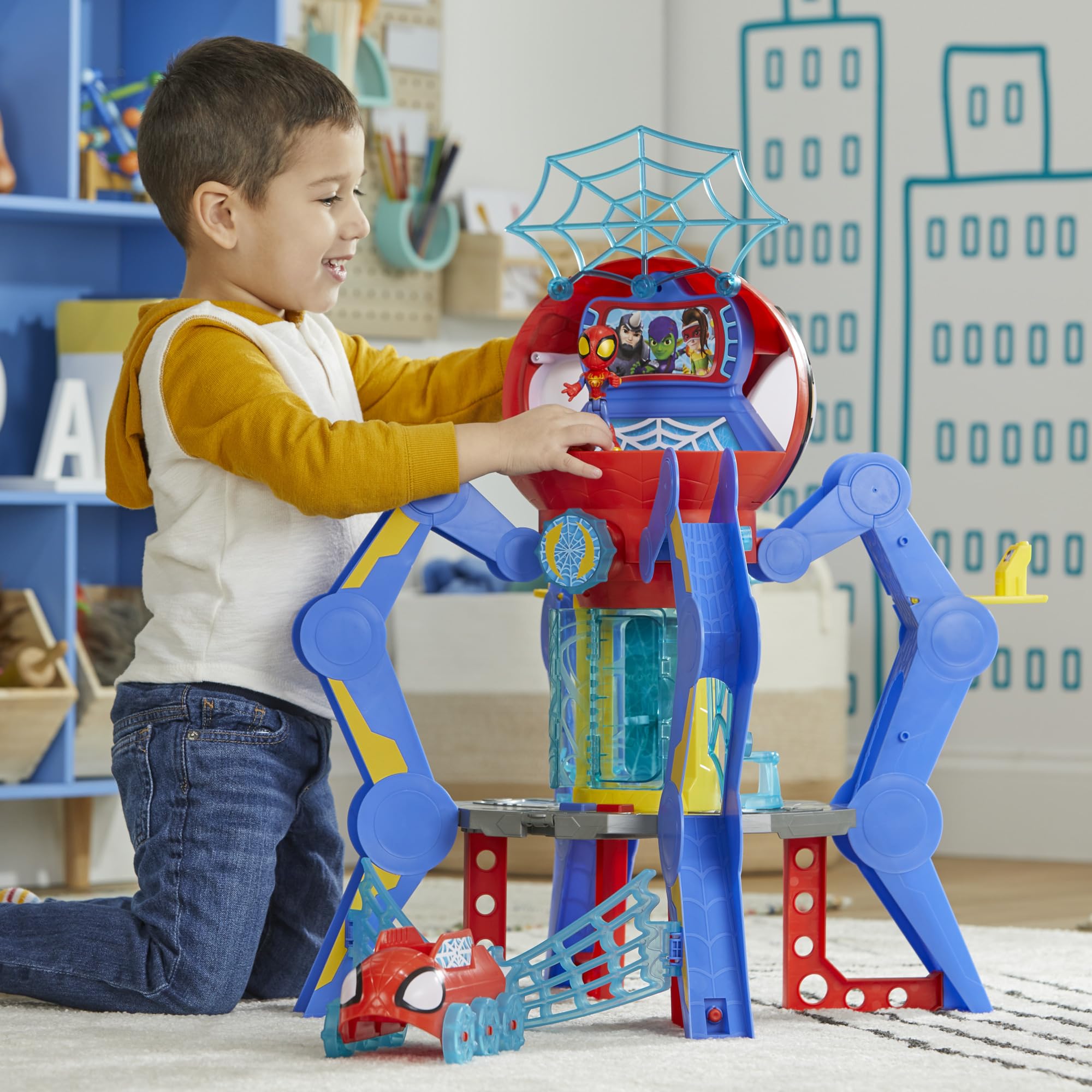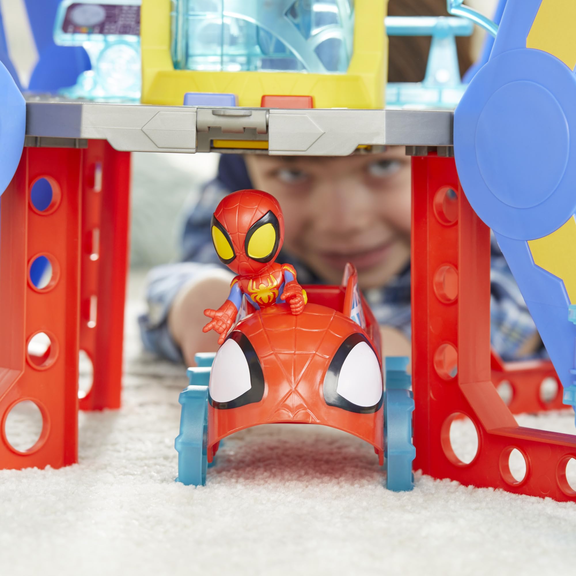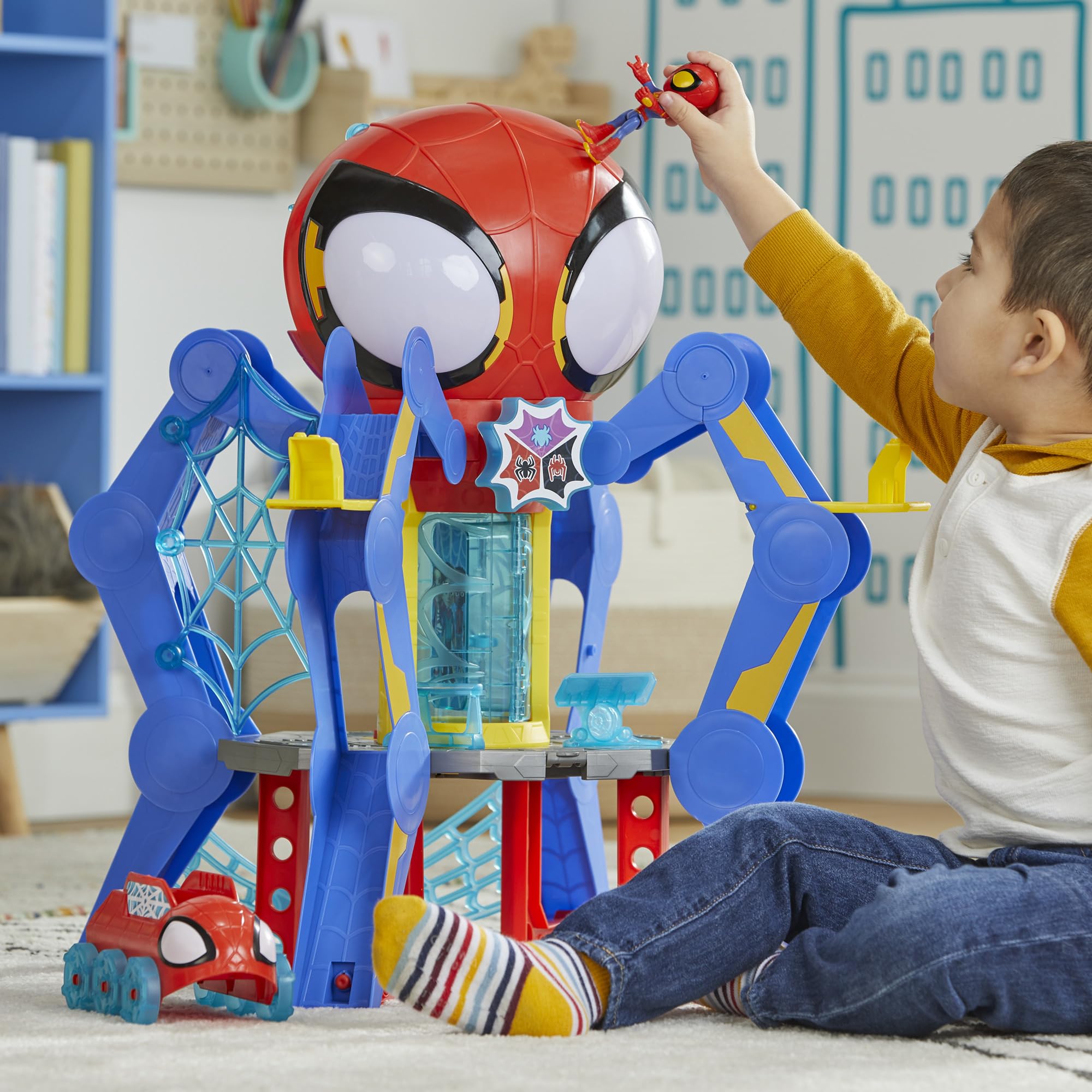 - LIGHTS AND SOUNDS: Spidey playset includes 50 sounds and phrases from the show. Spidey head's eyes also light up!
