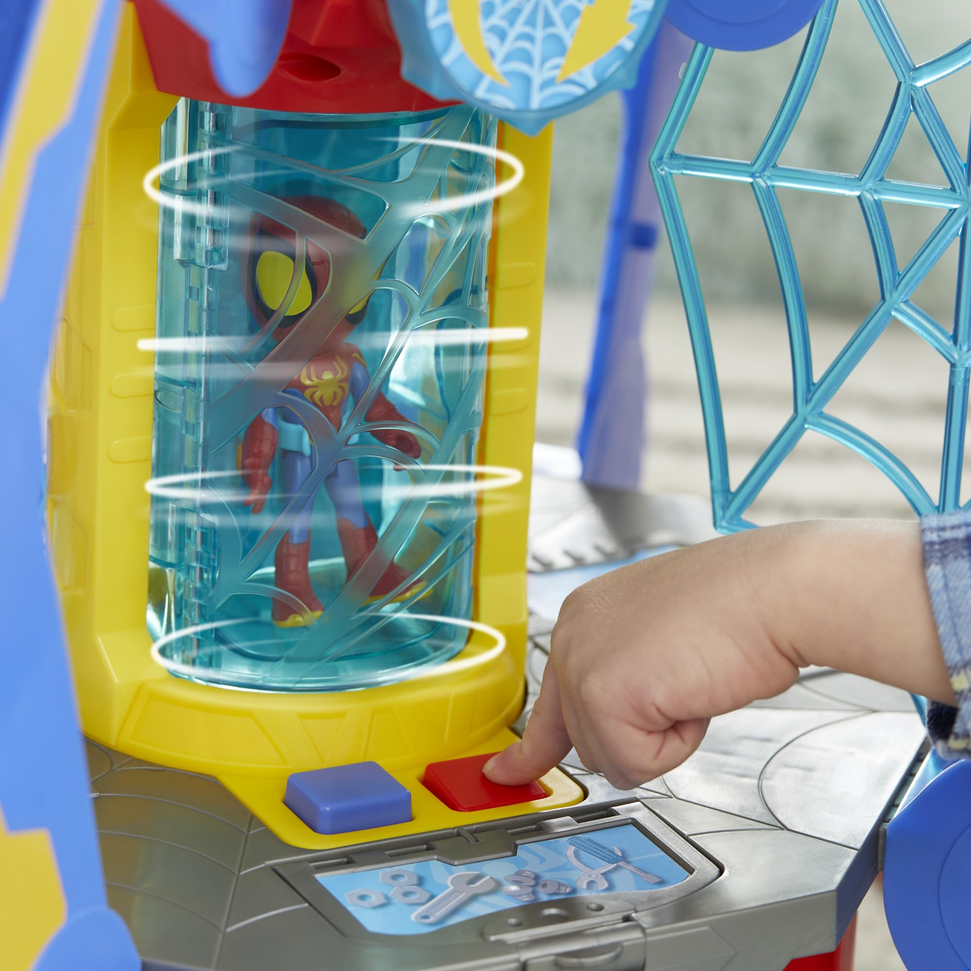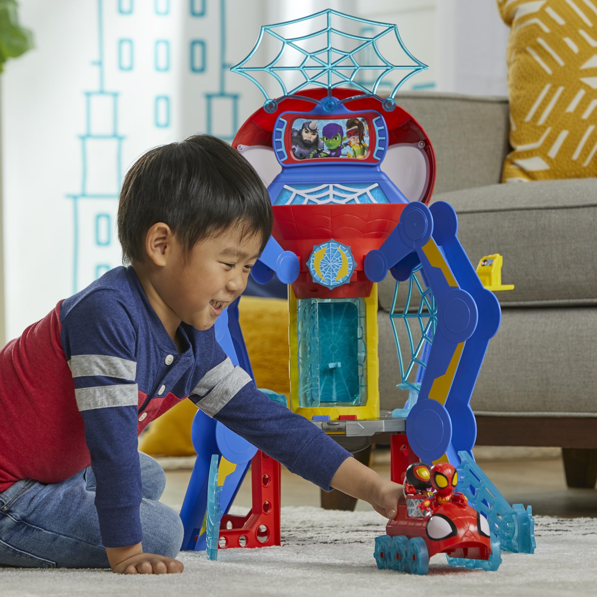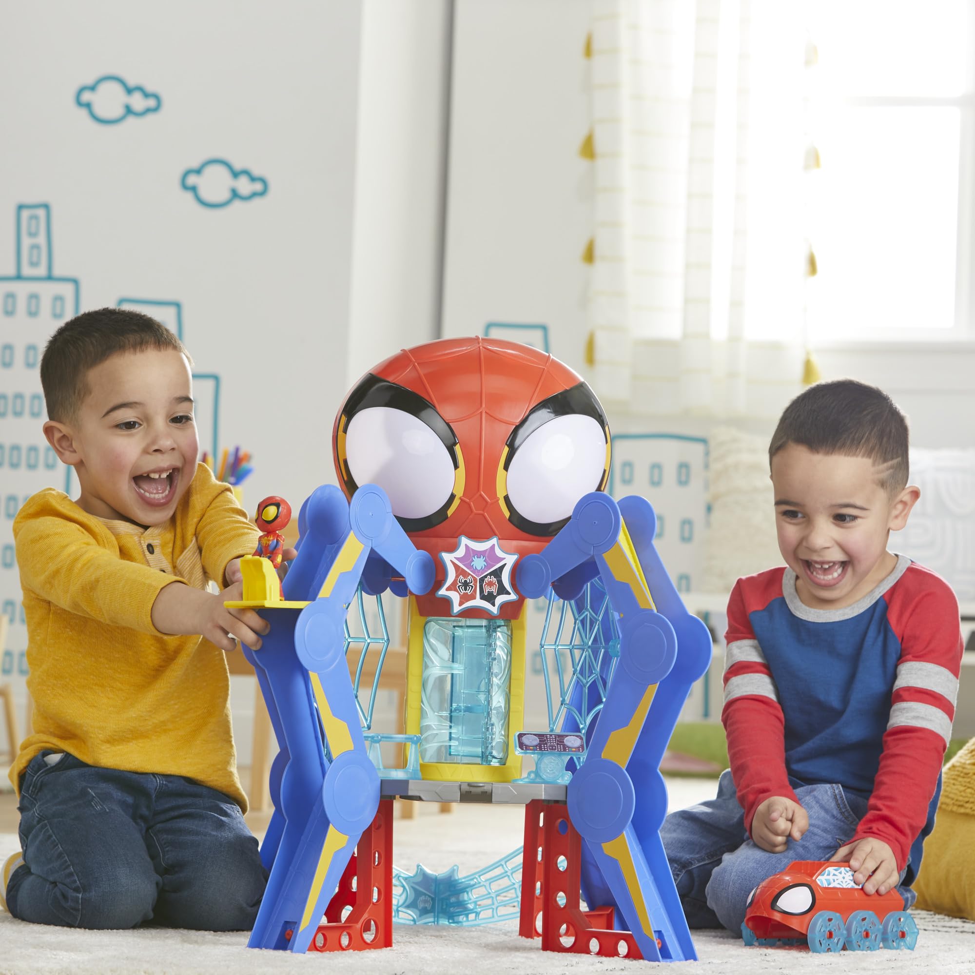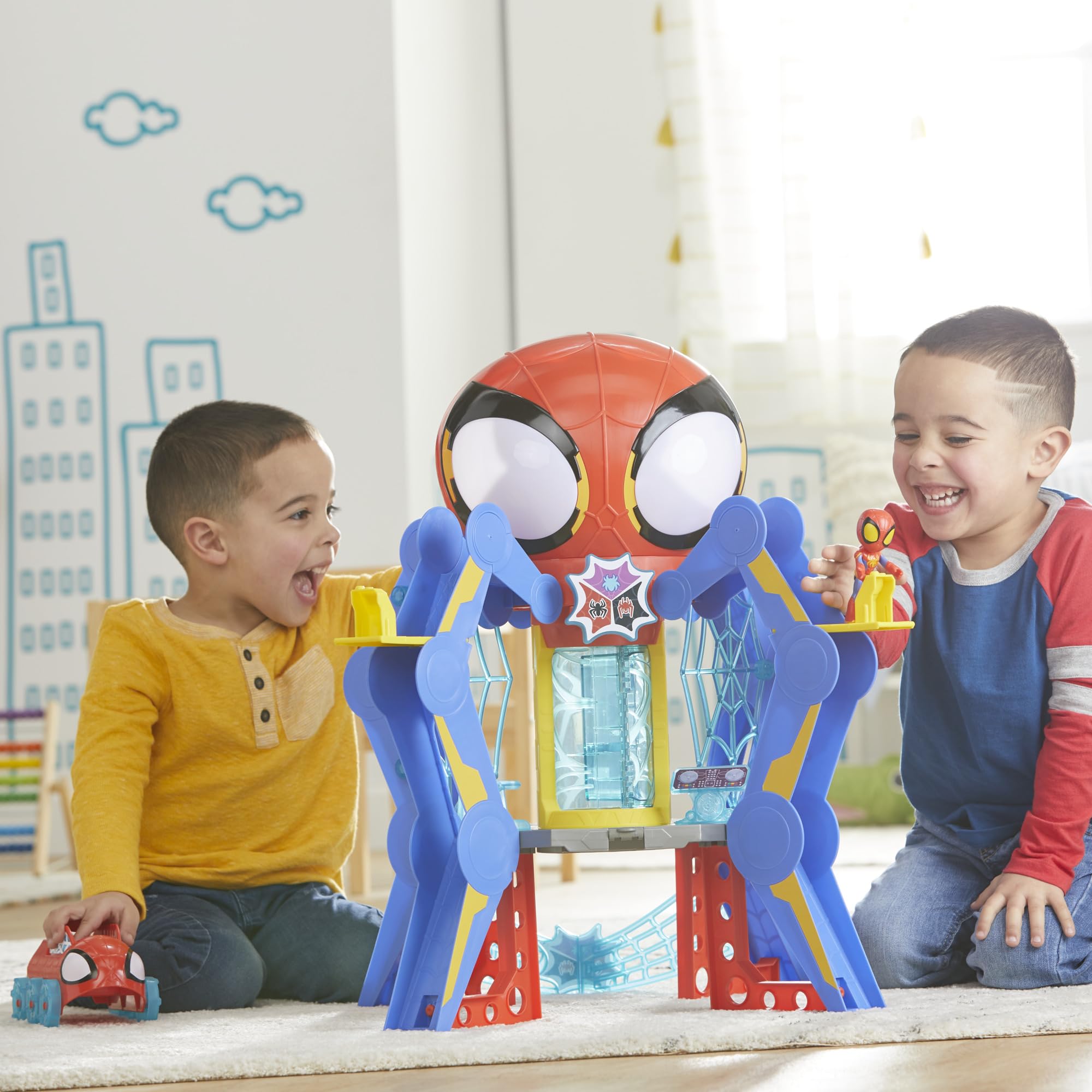 - LIGHTS AND SOUNDS: Spidey playset includes 50 sounds and phrases from the show. Spidey head's eyes also light up!