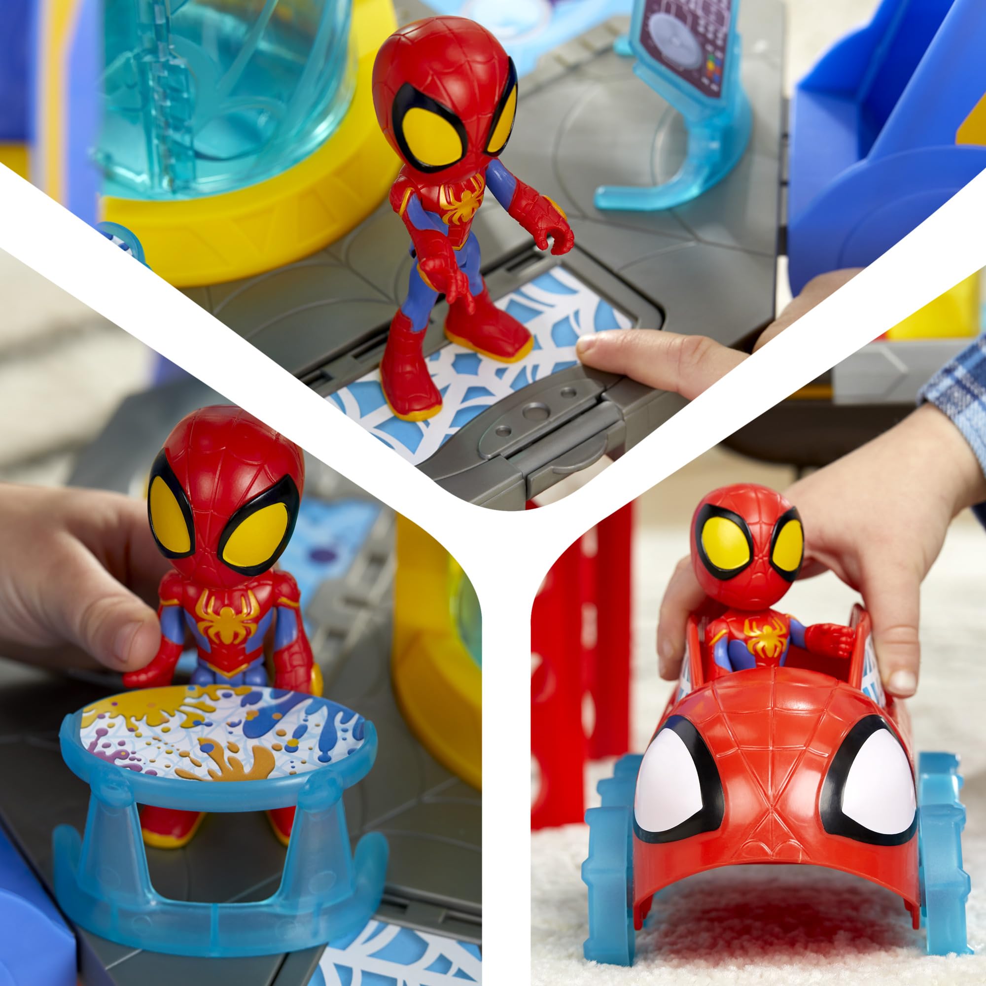 - 360-DEGREE ACTION PLAY: This Marvel playset has various play areas on all sides so girls and boys 3 and up can imagine lots of adventures with Team Spidey. Areas include a central spinning transformation chamber, a command center, a garage, and more!