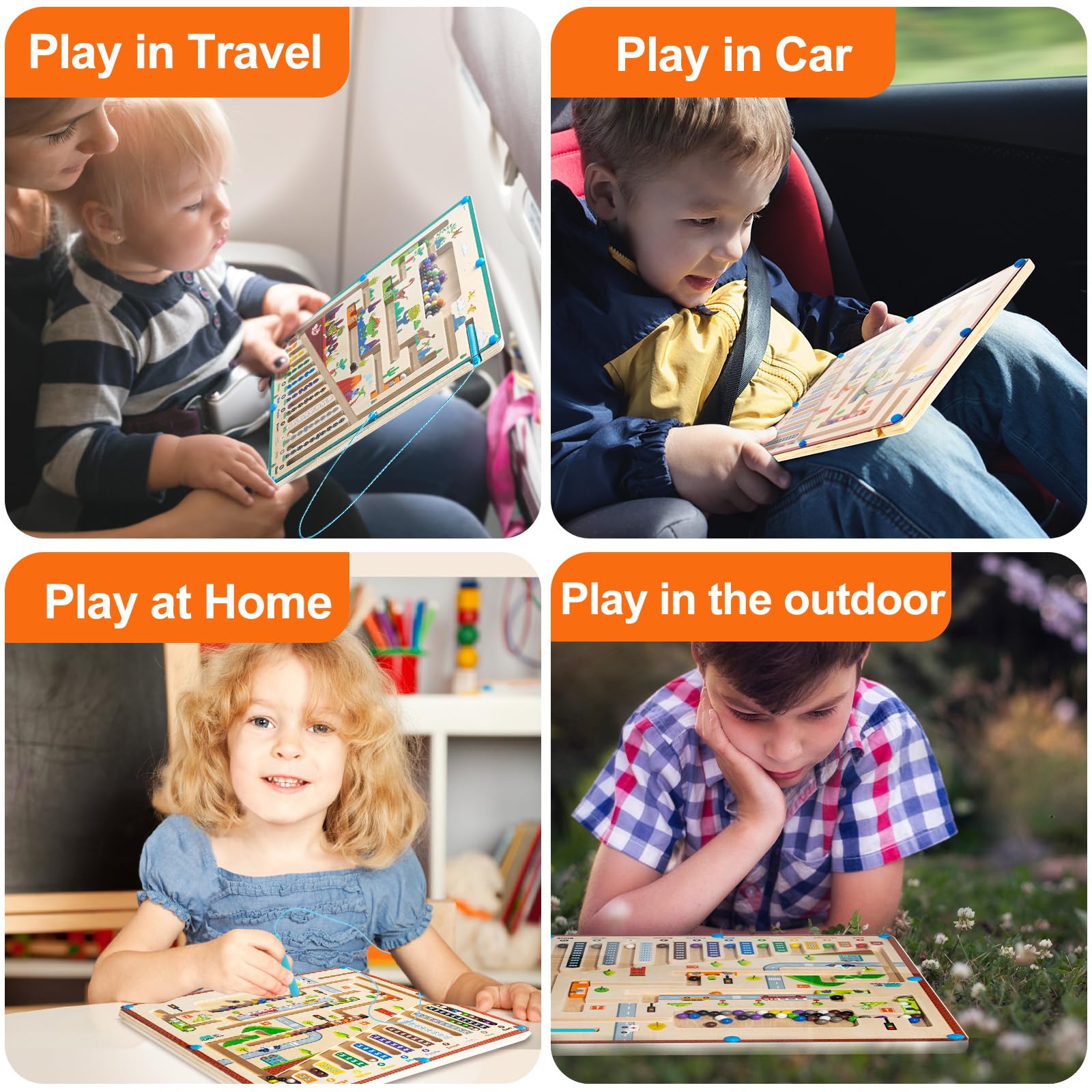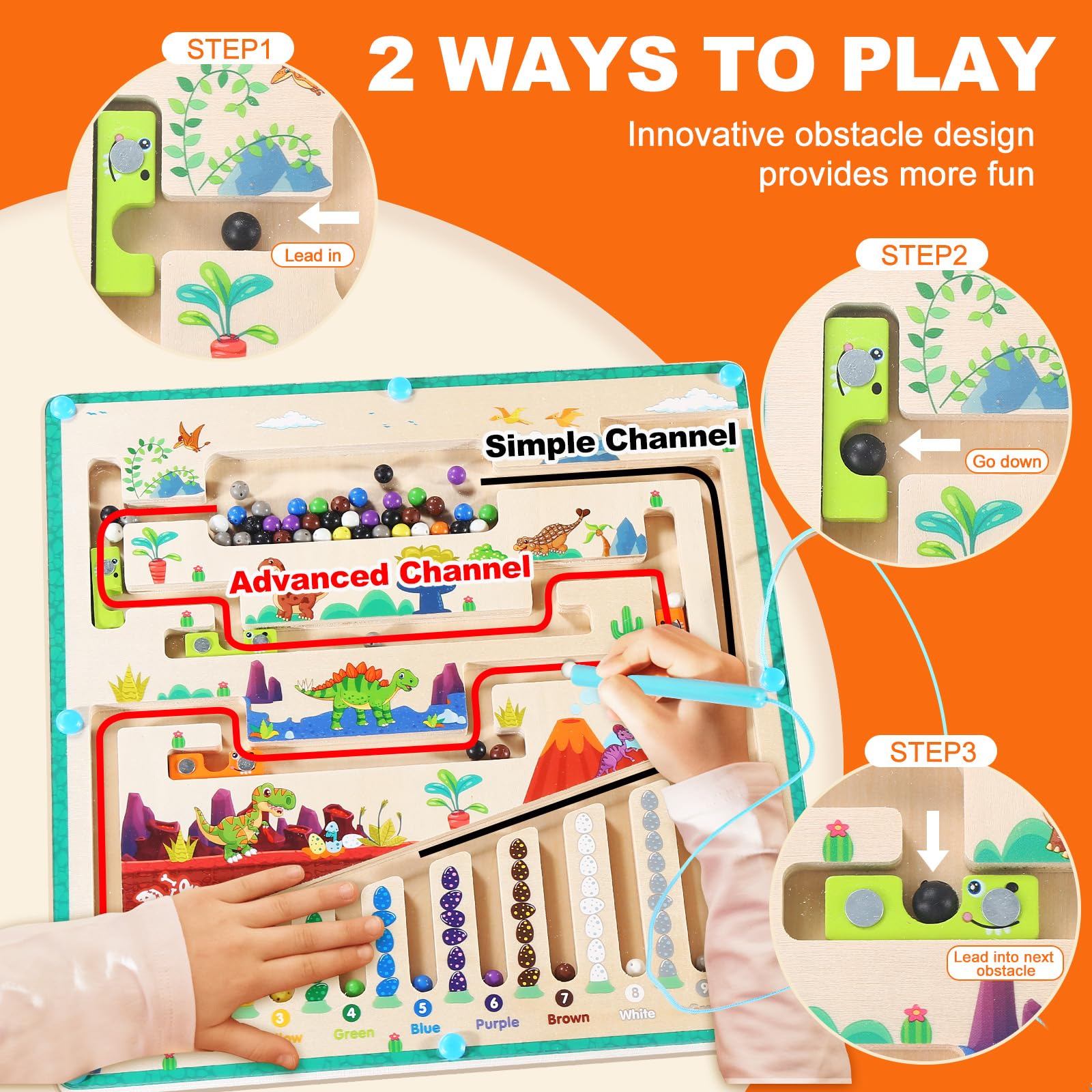 - u2b50Valuable Educational Toys: The Magnetic Maze Montessori Toy provides a learning and educational experience for toddlers ages 3 and up. The included magnetic wand slides across the acrylic surface. Kids love sorting colors, and the maze keeps them quiet and focused. This fully helps children develop eye and hand coordination and fine motor skills.