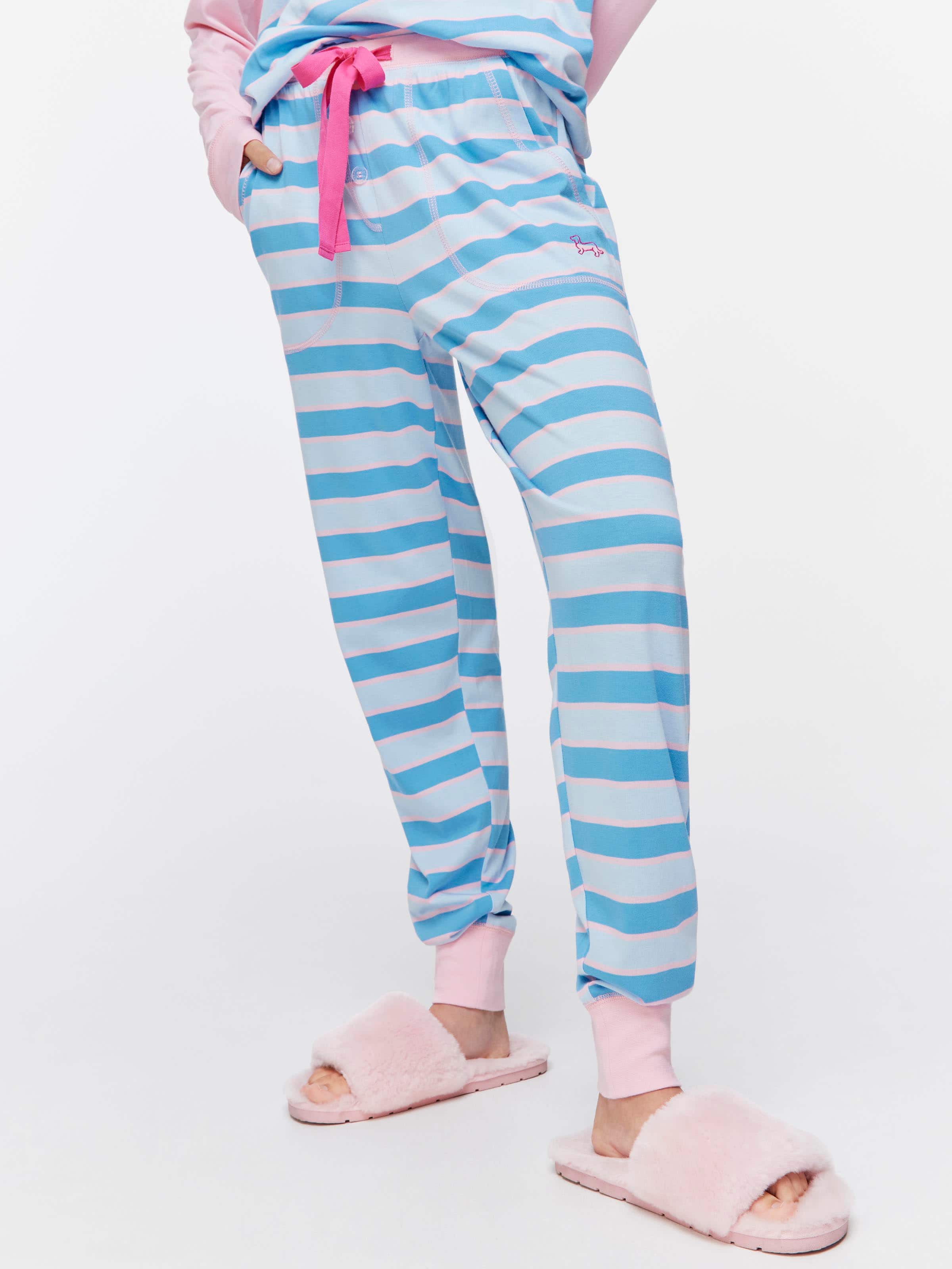 It'll be easy for you to say yes to these! Our comfy classic women's easy pants return in a striped blue print and pair best with the matching oversized tee.