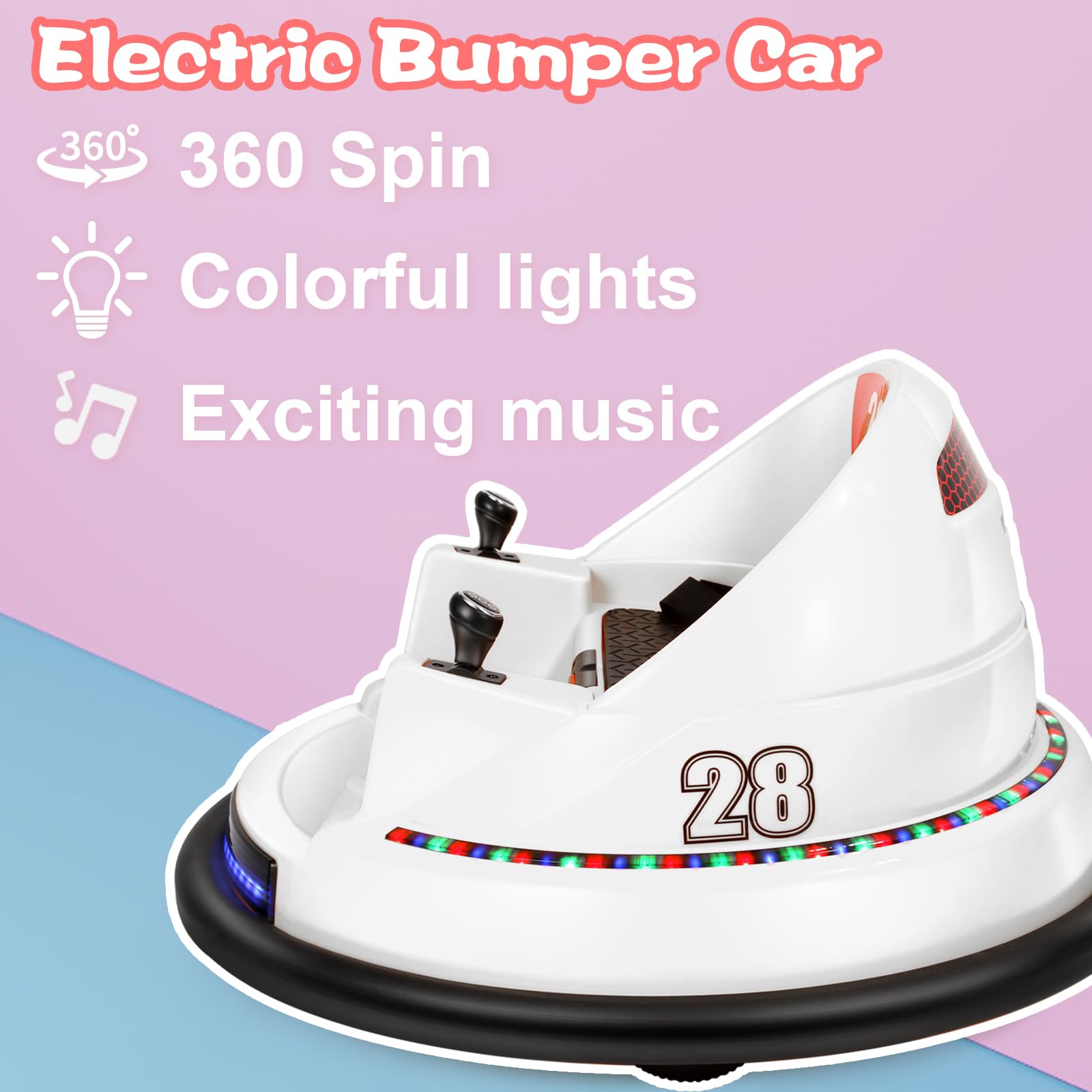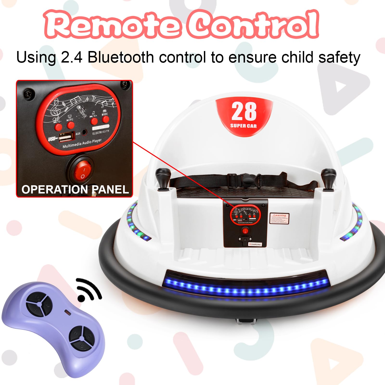 - Safety features - ASTM-certified to this bumper car and comprise a safety belt, anti-flat tires and Light. Recommended for children aged 3 to 8 years old.