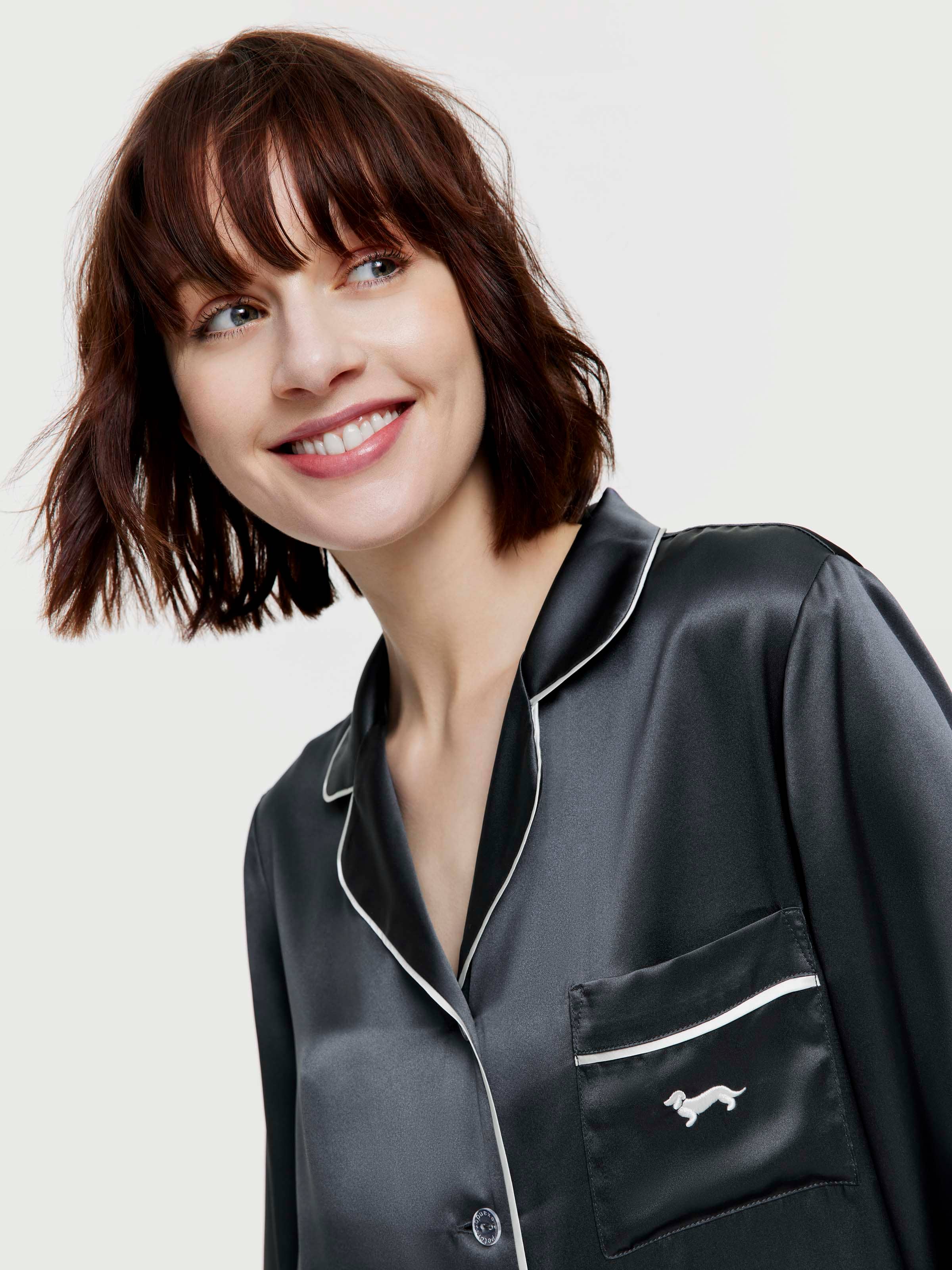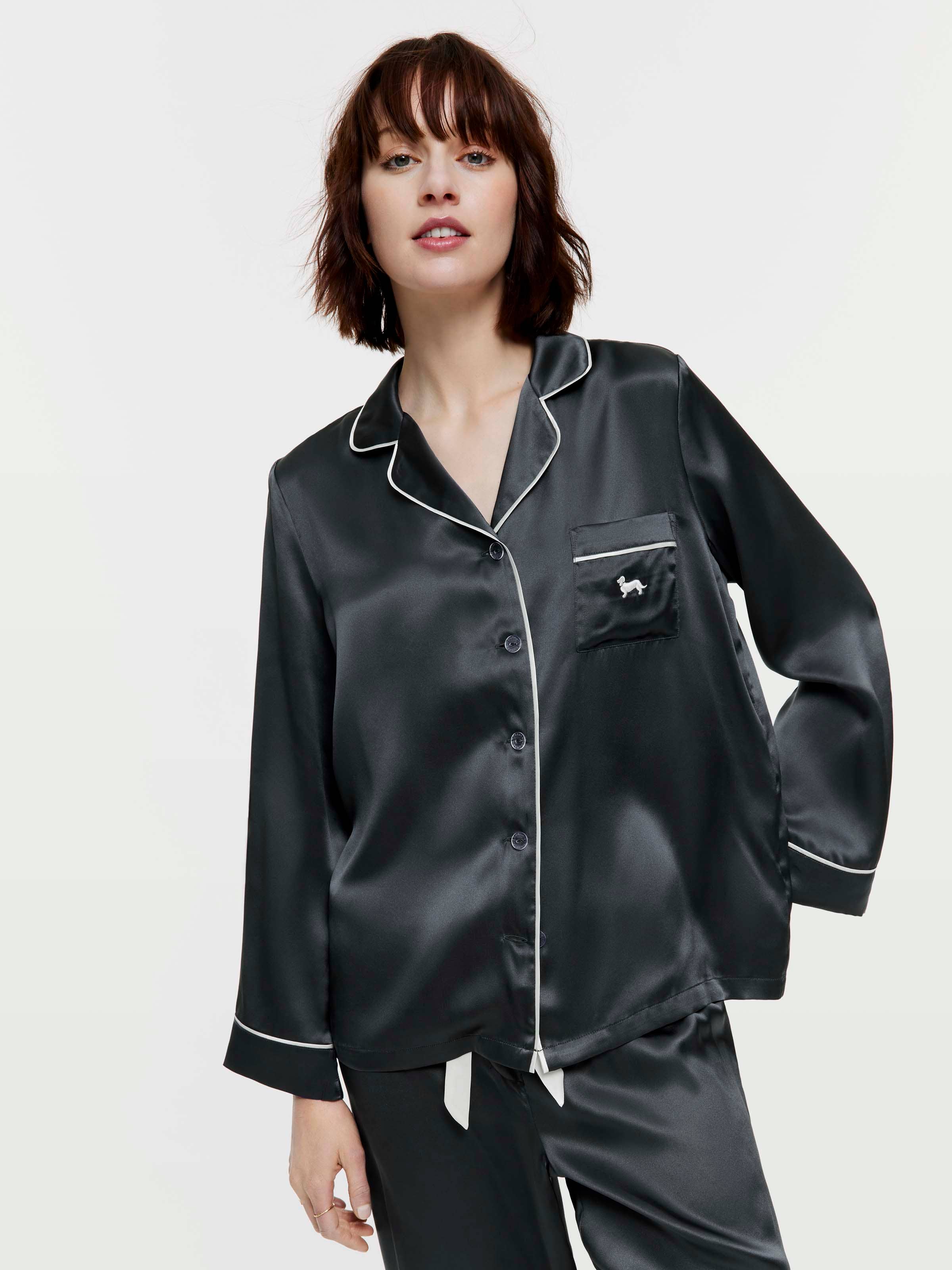When our P.A. classic shirt and matching pants meet our beloved 100% mulberry silk fabrication, a love story begins. Introducing our newest 100% Mulberry silk set, in an elegant charcoal colour way. Perfect for the woman in your life (or yourself) who loves a slice of luxury.