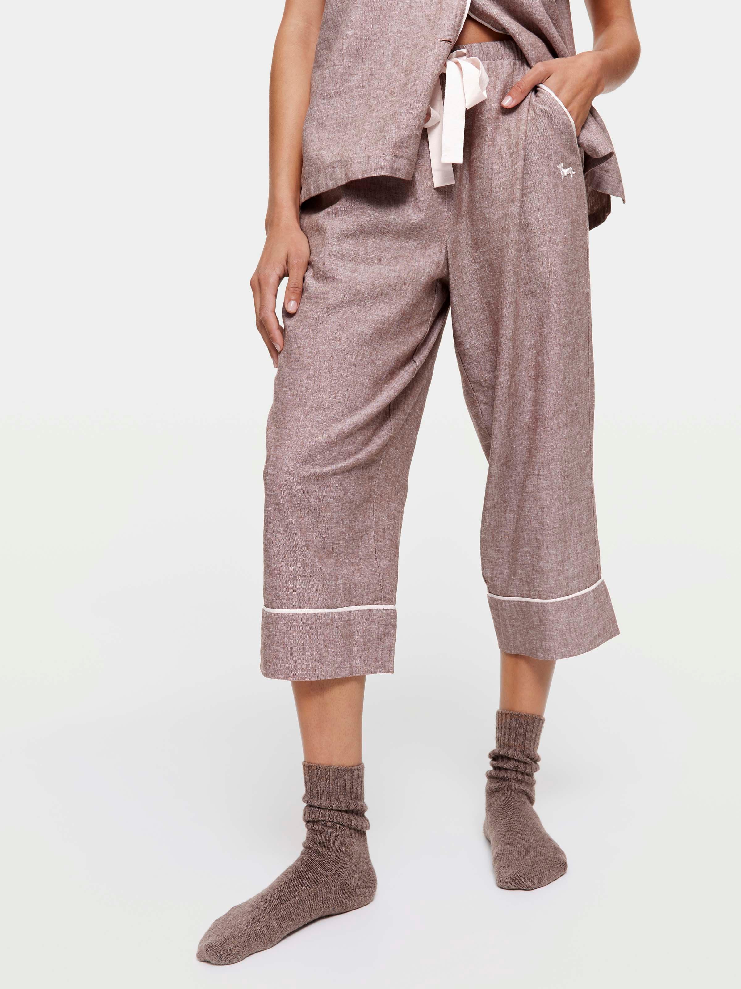 Get ready for a comfy night's sleep in breathable choc marle linen blend PJ pants. Pair it with the matching shirt for the perfect summer set.