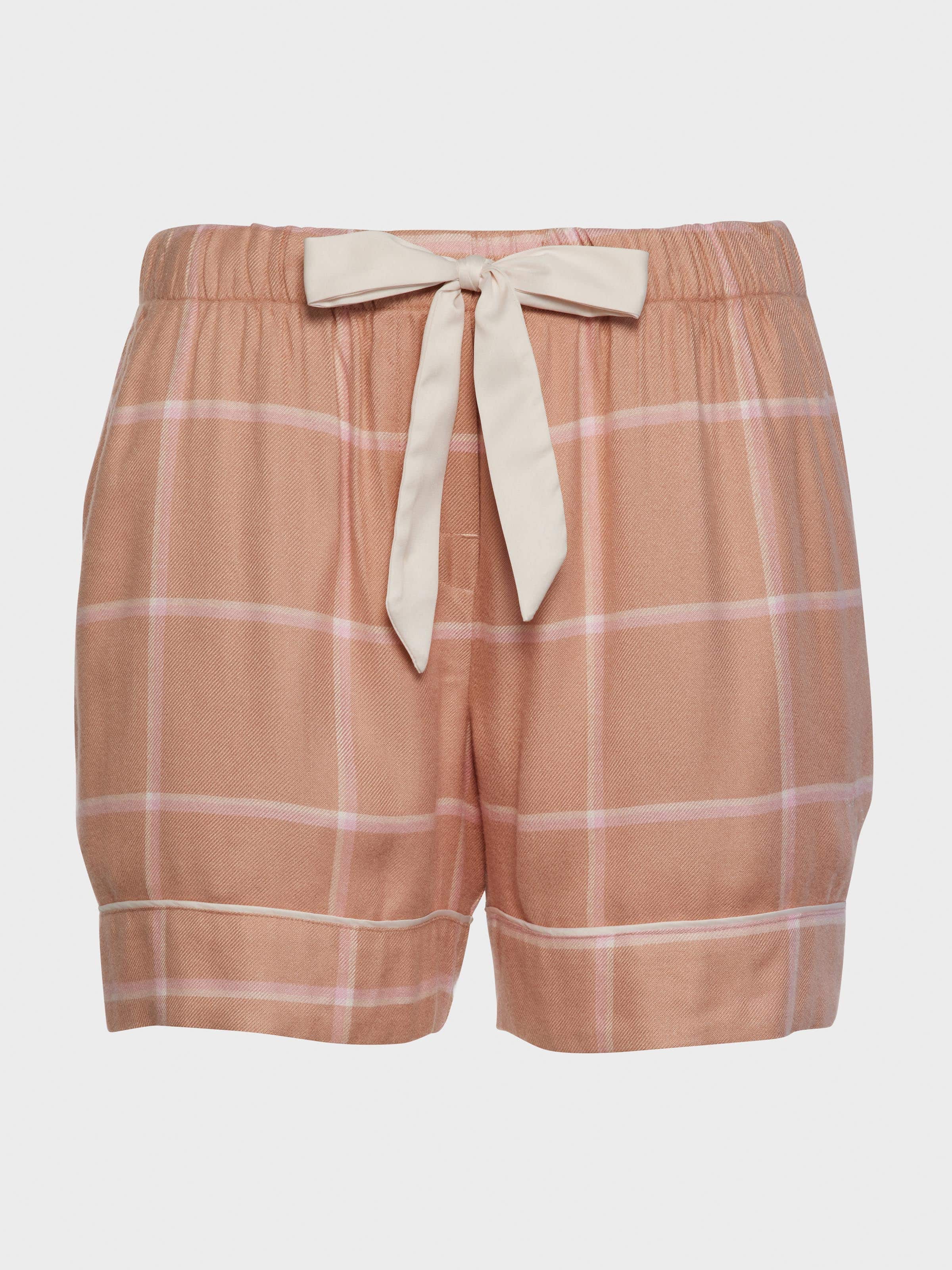 Create your capsule PJ collection with this tuxedo style viscose flannelette short in our soft chocolate check print. Perfect for mixing and matching with all your favourite P.A. classic tops.?
