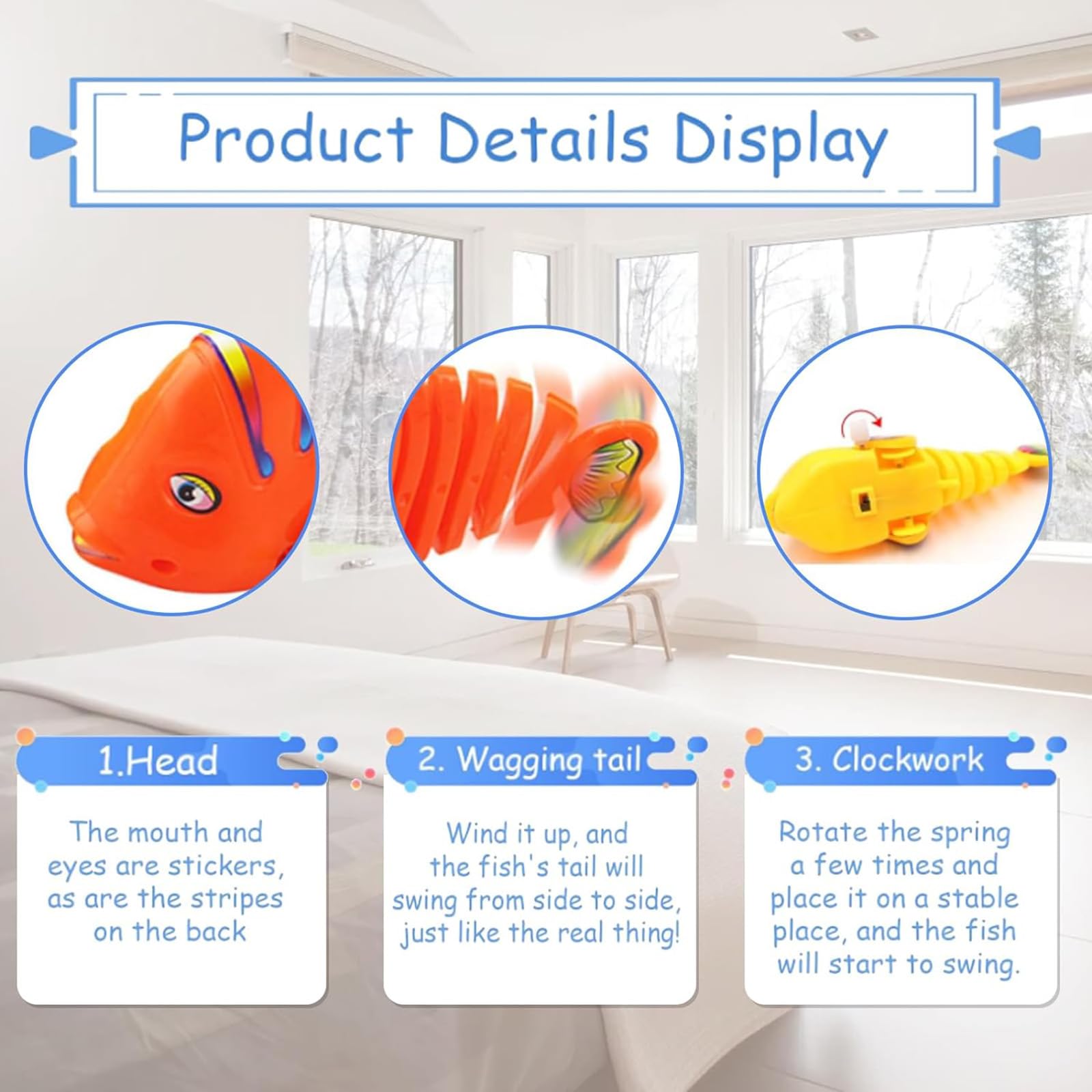 - u3010Widely Usedu3011Kids can play with these fish toys in the bathroom, swimming pool, beach, etc. The creative wind-up fish swim tub toy can also be used as a decoration for children's rooms or as an interactive cat toy for your pets. Wind-up toys help improve the relationship between parents and children by playing with the toys together with their children.