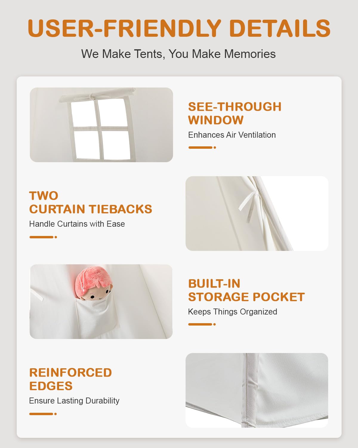 - Creating A Personal Space for Kids ----- Both side window and front opening can be closed completely by unfolding the integrated curtains; built-in floor cushion creates a personal space for kids to keep secrets and encourages them to become independent as well as showing respect for others.
