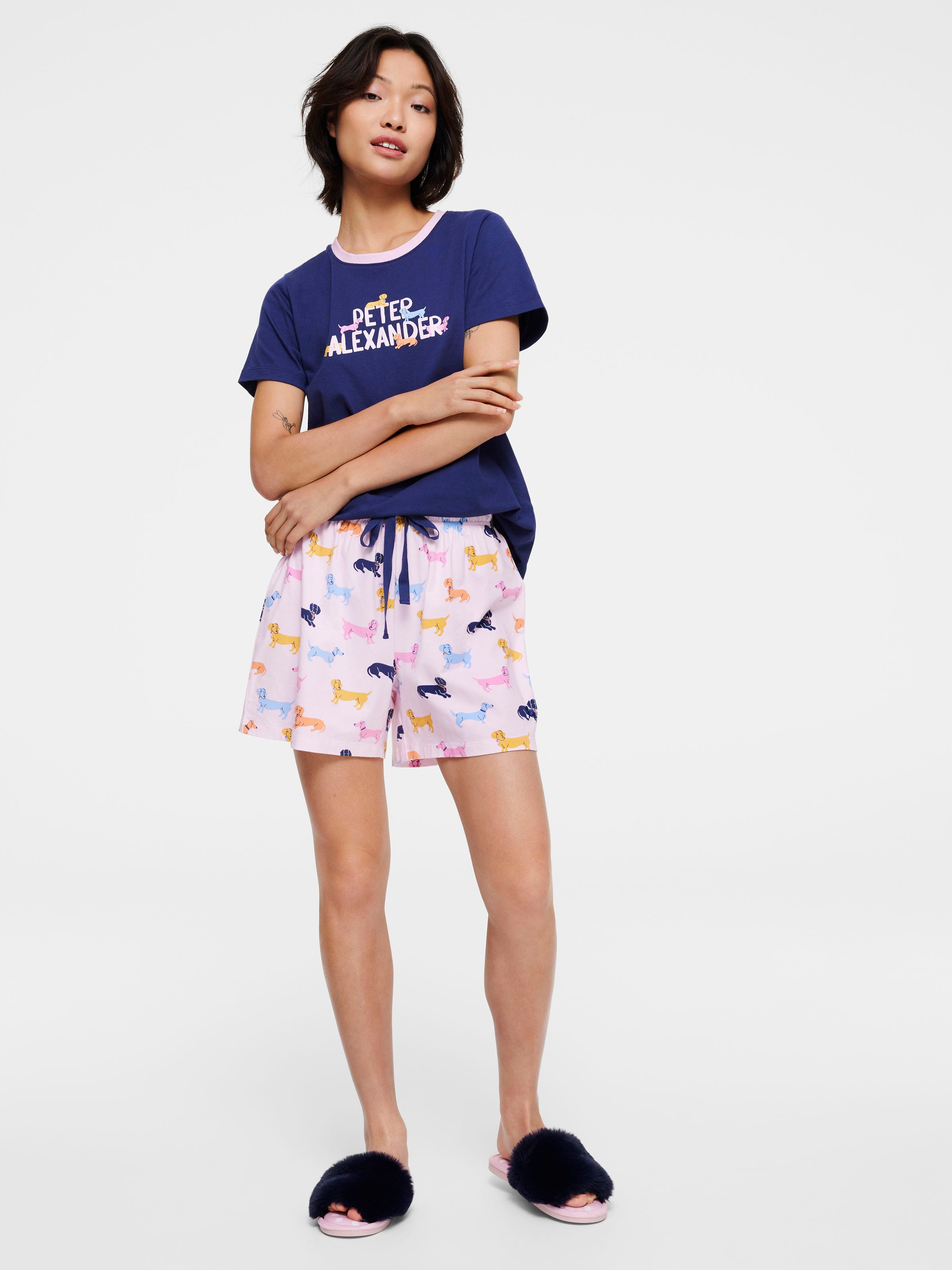 Penny and friends are sure to get your tail wagging this summer. Featuring an oversized cotton tee and matching printed pink shorts, these PJs are a pooch-perfect gift!