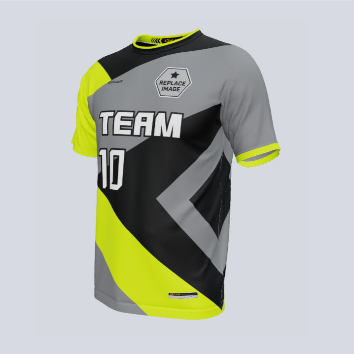 "Unleash the speed of style with our Custom 'Nitro' soccer uniform set! This high-octane ensemble is fully customizable, allowing you to revamp your team, club, or school's look with a design that sets pulses racing. Trust that your investment in this turbocharged custom soccer uniform will ignite team spirit like never before. Create a design that is truly your own and accelerate your team's presence on the field. With customizable jerseys and socks, you'll leave your opponents in awe as you zoom past them. Thanks to advanced moisture-wicking technology, you can trust that this uniform will keep you cool under pressure. Strap in, fuel up, and gear up to conquer the game in blazing style!"