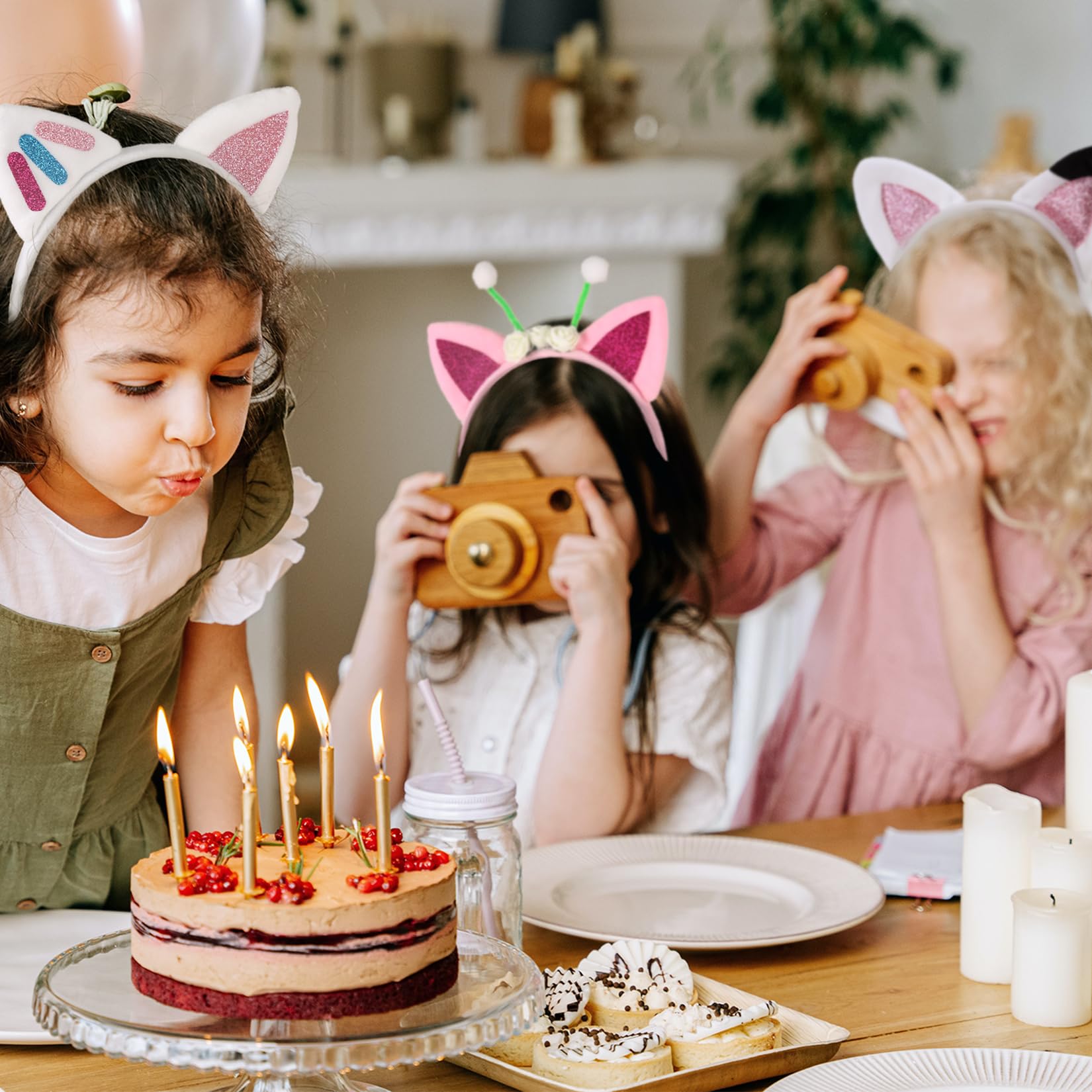- u3010SOFT & DURABLEu3011: Toddler Halloween Headband made of deluxe flannel, Soft, Comfy and built to last. Decorated with shiny glitters, sewed well, can be used as Birthday Party Gifts. Cat ears headband for girls with great elastic, perfect size for kids from 3-12 Y/O. Kids can have fun all day long.
