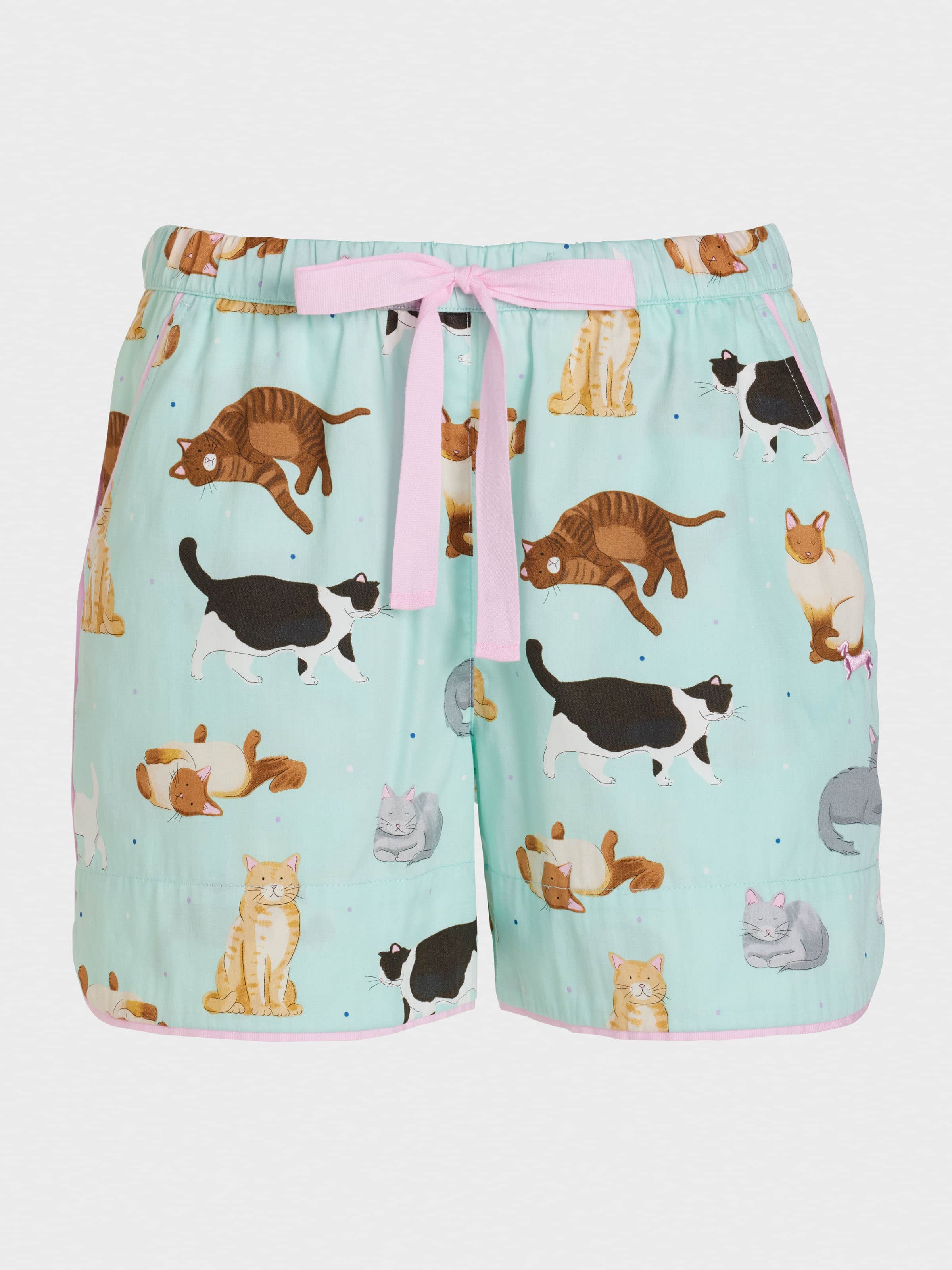 Here, kitty kitty! These super cute women's PJ shorts feature an all-over mint green cat print and will 'paw' best with the matching cat pocket tee.