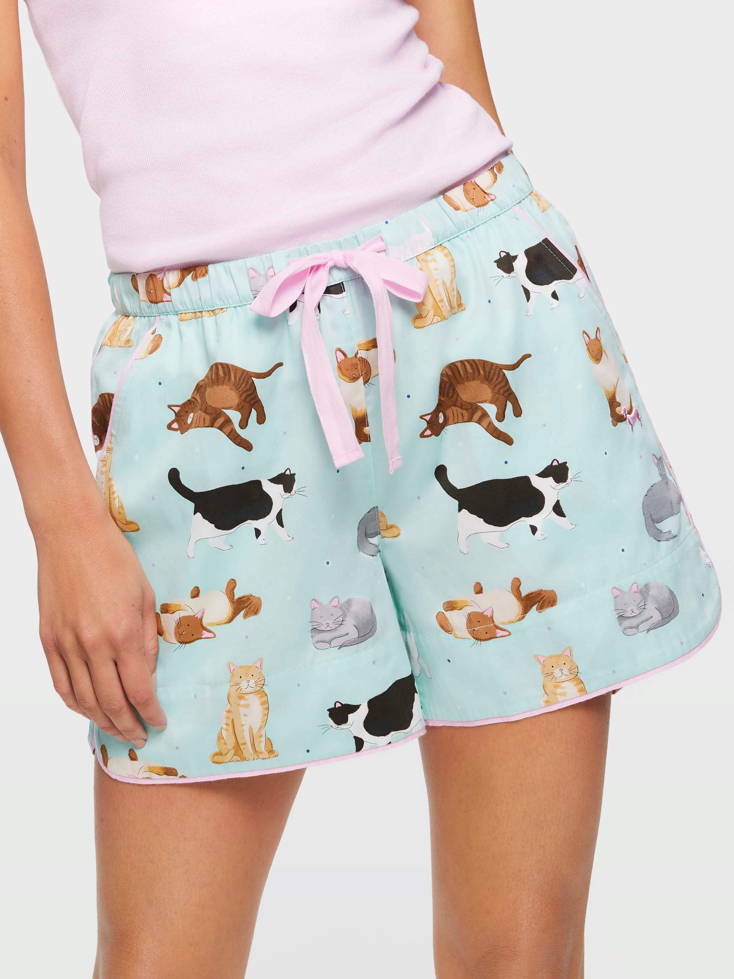 Here, kitty kitty! These super cute women's PJ shorts feature an all-over mint green cat print and will 'paw' best with the matching cat pocket tee.