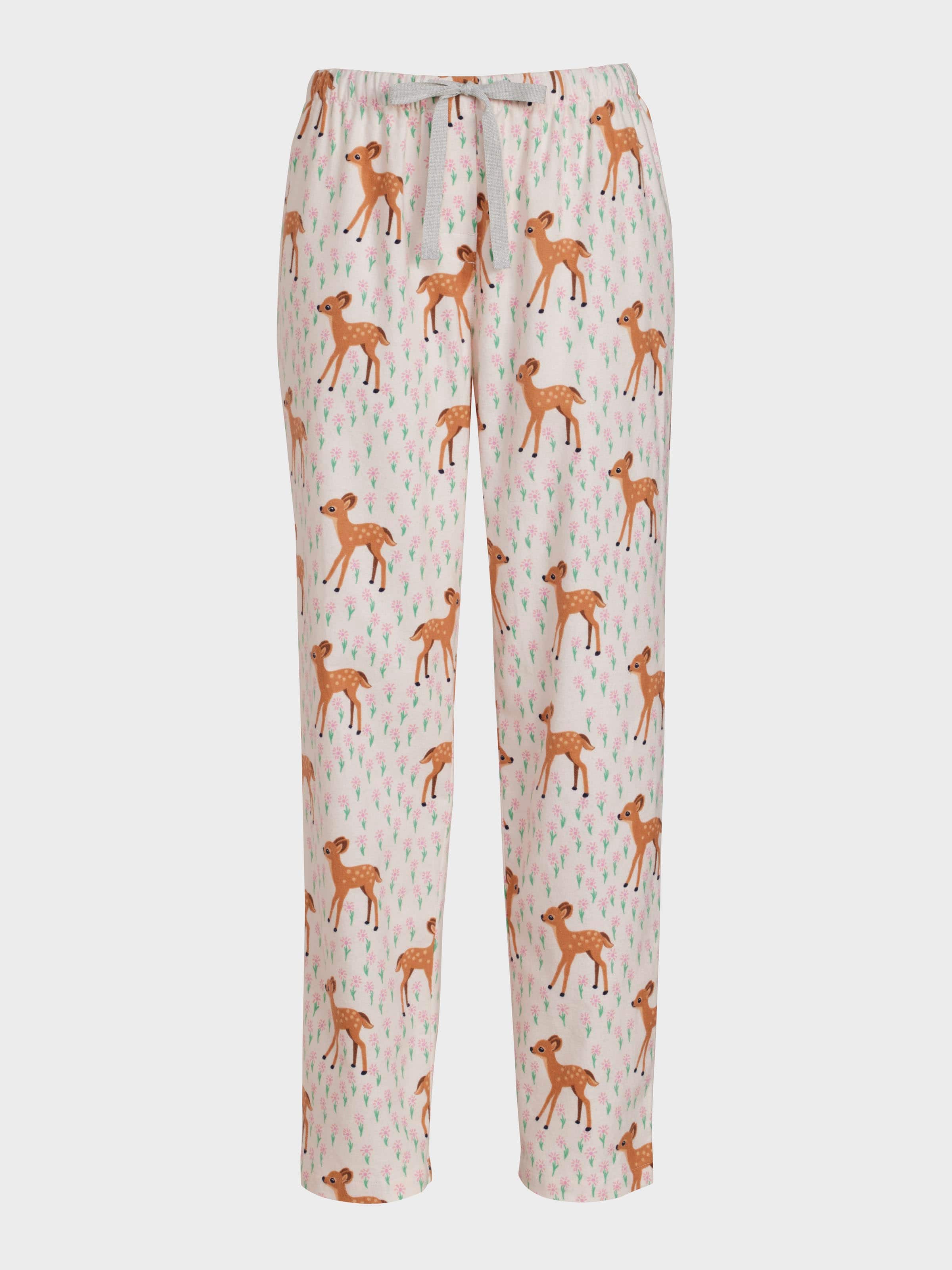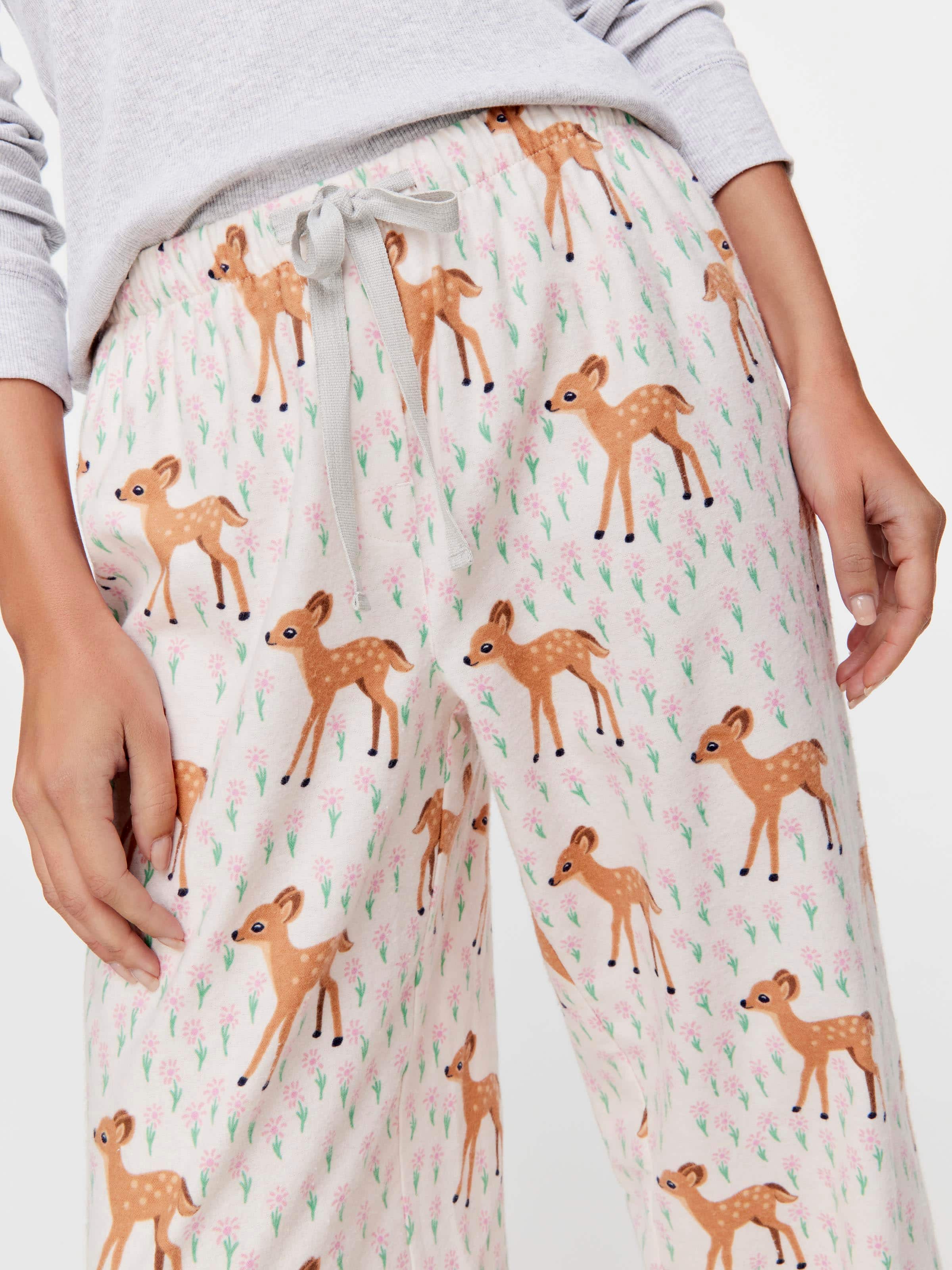 Oh deer! Fawn over these comfy women's flannelette pants, featuring an all-over pink woodland print.