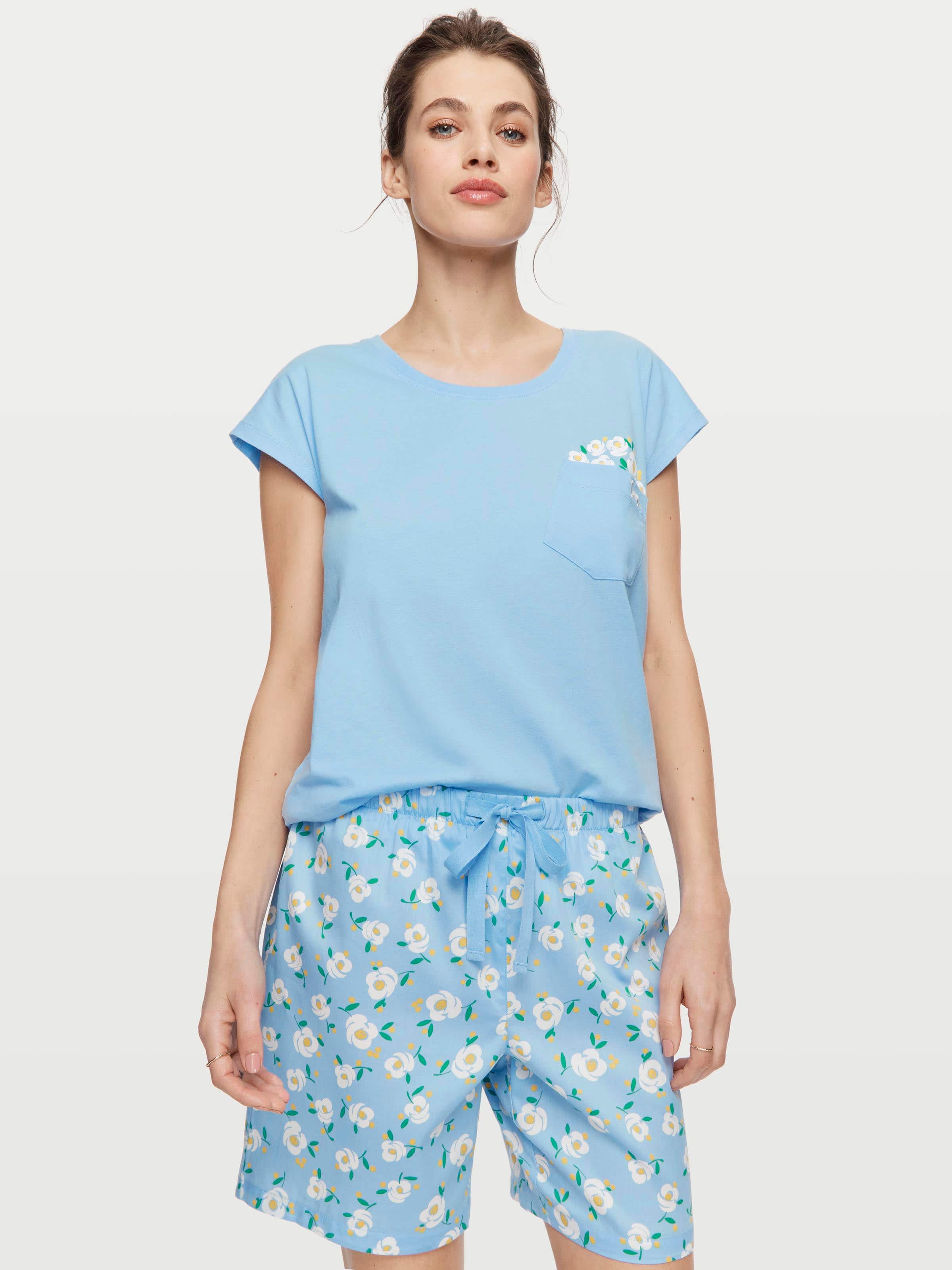 Flirty florals meet bold blues in these adorable women's cotton sateen shorts. Wear with the matching daisy pocket tee, or change it up with your favourite PA basic.